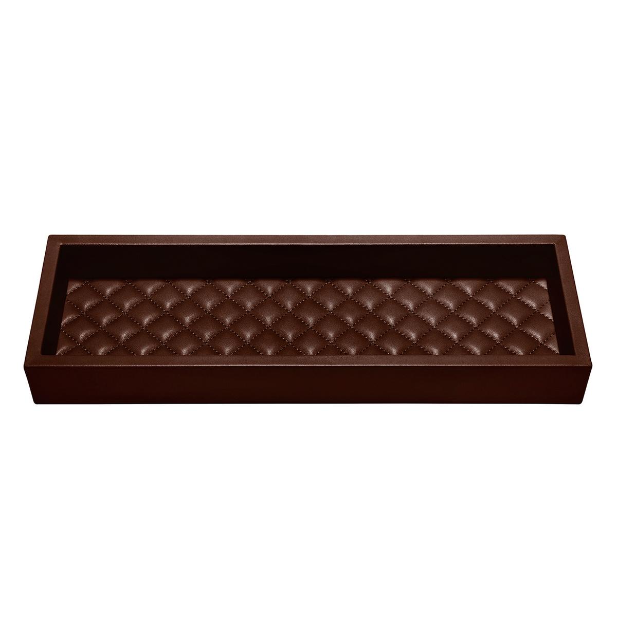 Außenseiten und Ränder sind mit feinstem Nappaleder umhüllt. Der Boden im Inneren wird bei den elfenbein-, grau- und chocolatfarbenen Ablagen mit gestepptem und wattiertem glattem Nappaleder ausgelegt. Bei der Box in Taupe bildet ein Boden aus gestepptem und wattiertem Wildleder einen schönen Kontrast zu dem glänzenden Nappaleder der Außenseite.