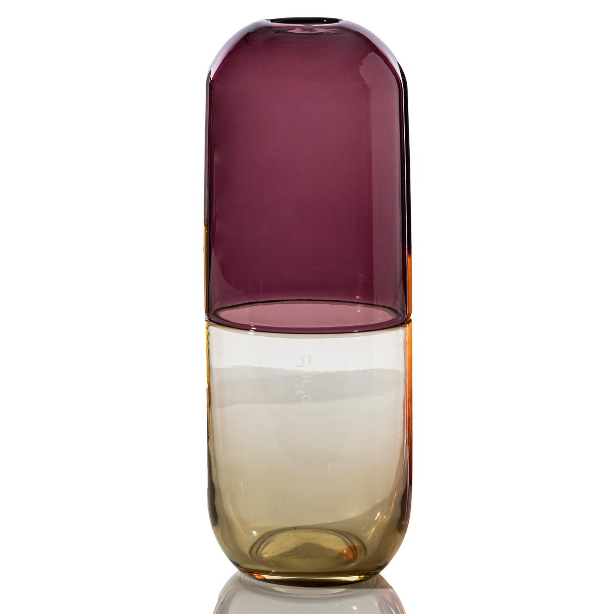 Die mundgeblasenen Venini Glasobjekte sind mehr Kunstobjekte, aber durchaus auch als Vase zu verwenden. Form und Farbe erinnern an "Glückspillen" aus der Pharmaindustrie. Fabio Novembre wollte mit einem Augenzwinkern zum Ausdruck bringen, dass spielerisches Design genau den gleichen Effekt besitzen kann wie echte Pillen. Entstanden sind fünf verschiedene Farbkombination in leuchtenden Farben aus Muranoglas. Die chemische Formel für jedes Glücks-Hormon ist dezent auf jede Vase eingraviert.