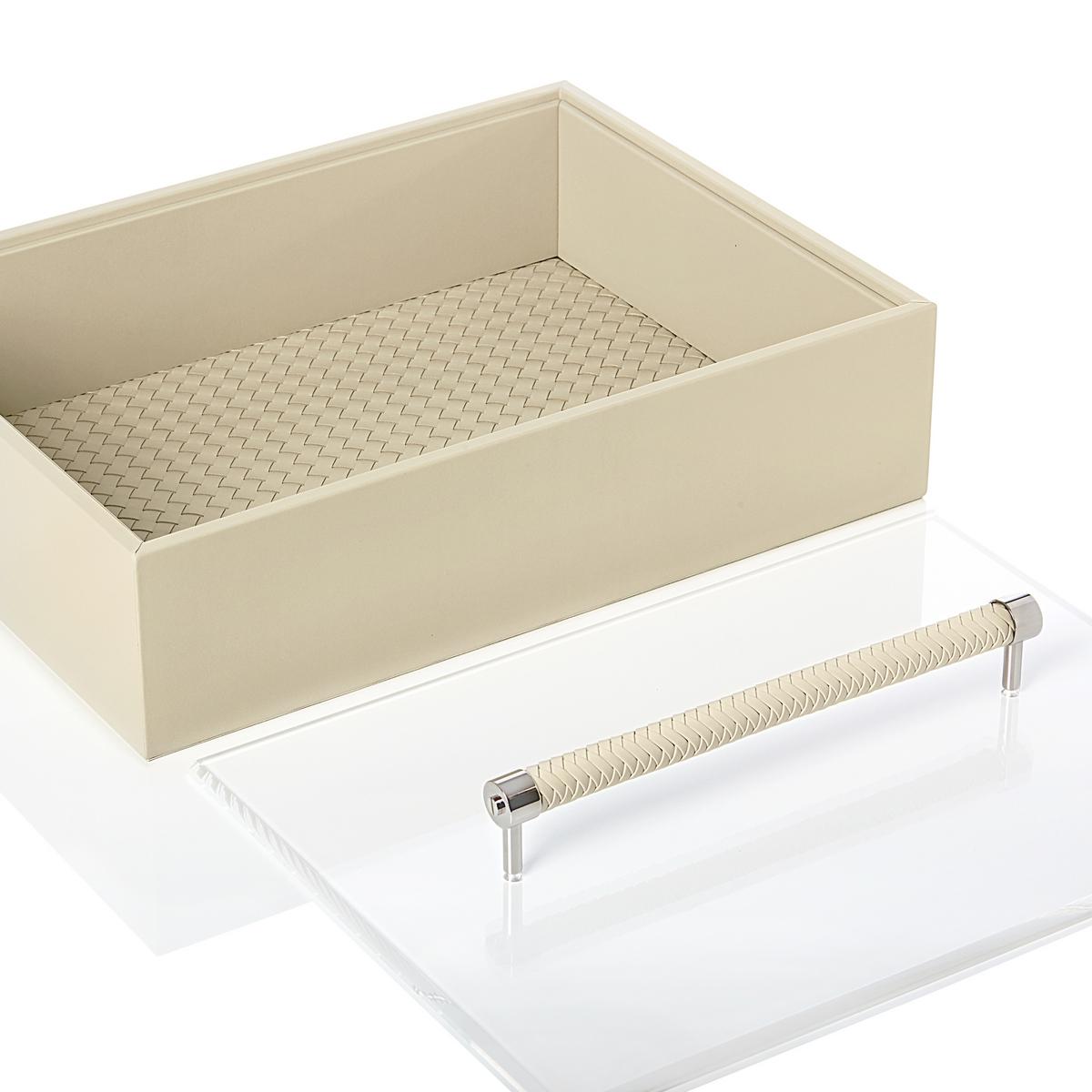- Box: Nappaleder, Deckel aus Acryl mit Ledergriff, reine Handarbeit aus Italien