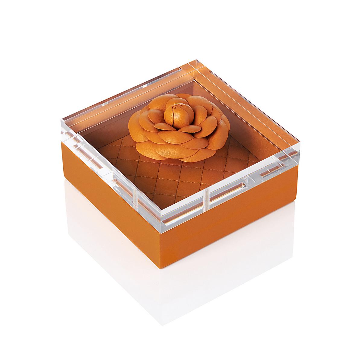 Die Lederboxen "Fiori" aus Nappaleder mit Acryldeckel und handgenähten Lederblüten werden in reiner Handarbeit von der italienischen Manufaktur Riviere gefertigt.