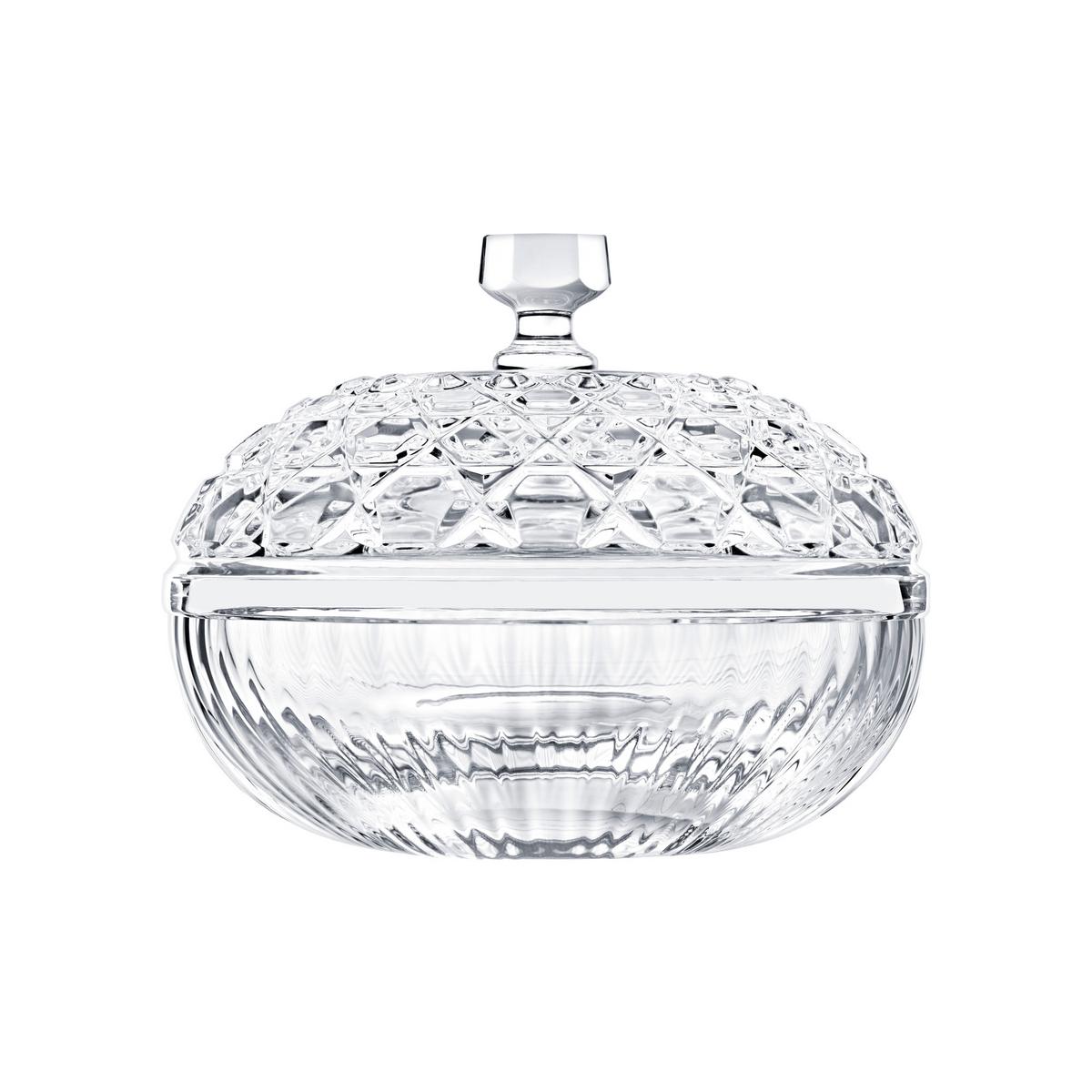 Das Design der Bonbonnieren "Royal" von Saint-Louis ist inspiriert von edlen Leuchtobjekten – den klassischen Kronleuchtern. Aus Kristallglas werden mundgeblasene und von Hand geschliffene exklusive Bonbonnieren geschaffen, die als praktisches Behältnis für Süßes dienen, aber auch als Deko-Element etwas hermachen.