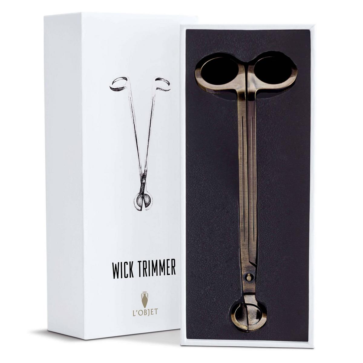 Eine Dochtschere ist eine speziell geformte Schere zum Kürzen eines Kerzendochtes. Die Dochtschere "Apothicaire" von L’Objet besteht aus Messing und erinnert an ein Instrument aus dem letzten Jahrhundert. Durch die angewinkelten Schneidblätter fällt das abgetrennte Dochtstück nicht herunter. Ein regelmäßiges Kürzen des Dochtes verlängert so die Brenndauer einer Kerze. Geliefert wird die Dochtschere "Apothicaire" in einer hochwertigen L’Objet Geschenkbox.