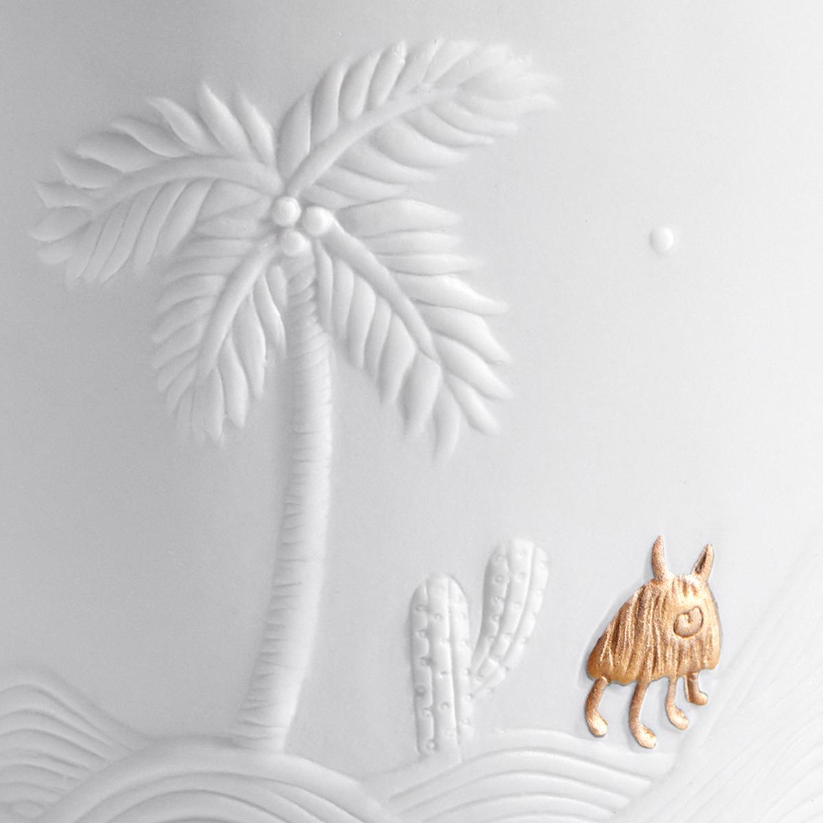 Der charakteristische Mojave Palm-Duft, der zusammen mit dem Parfümeur Yann Vasnier entwickelt wurde, erfüllt Ihren Raum mit trockenen, holzigen Noten, die aus der Wüste stammen. Die Kerzen werden von Hand in die Porzellangefäße gegossen. Als besonderes Highlight ist das kleine Monster mit 24-karätigem Gold verziert.