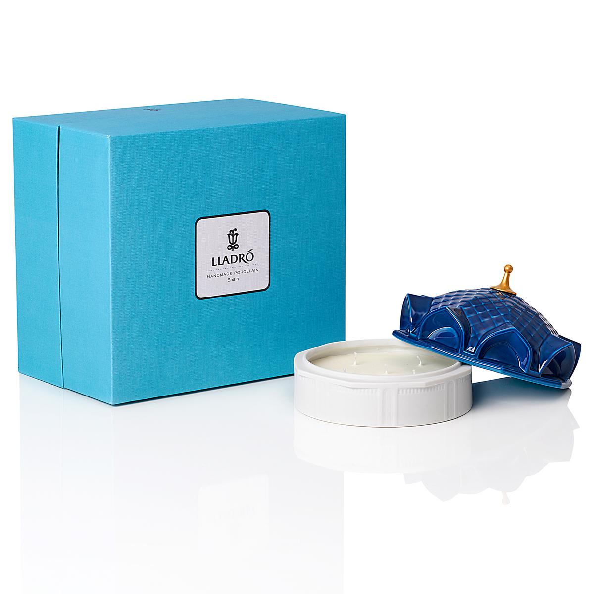 Inspiriert von den legendären Geschichten aus Tausendundeiner Nacht - mit der Kollektion "1001 Lights" bringt Lladró Kerzenlicht und Duft auf ganz besondere Weise zusammen. Die Behälter für die Duftkerzen bestehen aus lichtdurchlässigem und handgraviertem Porzellan. Besonders aufwendig gestaltet ist die Kuppel. Sie ist handbemalt und verziert mit einer Turmspitze aus 22-karätigem Gold, welches mit einer komplexen Technik auf das Porzellan appliziert wird.