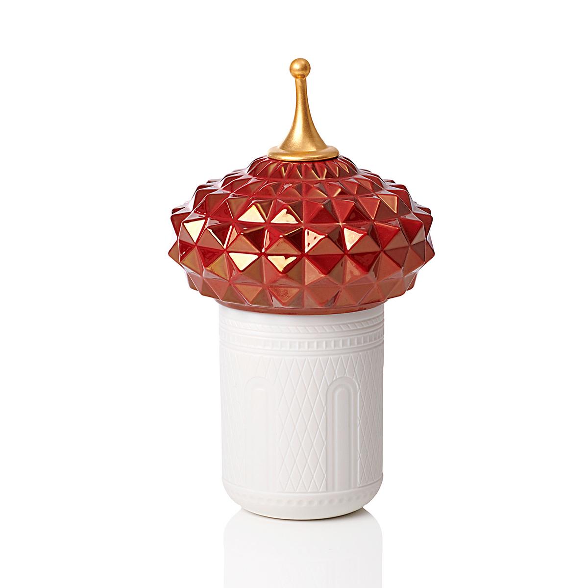Inspiriert von den legendären Geschichten aus Tausendundeiner Nacht - mit der Kollektion "1001 Lights" bringt Lladró Kerzenlicht und Duft auf ganz besondere Weise zusammen. Die Behälter für die Duftkerzen bestehen aus lichtdurchlässigem und handgraviertem Porzellan. Besonders aufwendig gestaltet ist die Kuppel. Sie ist bemalt und verziert mit einer Turmspitze aus 22-karätigem Gold, welches mit einer komplexen Technik auf das Porzellan appliziert wird.