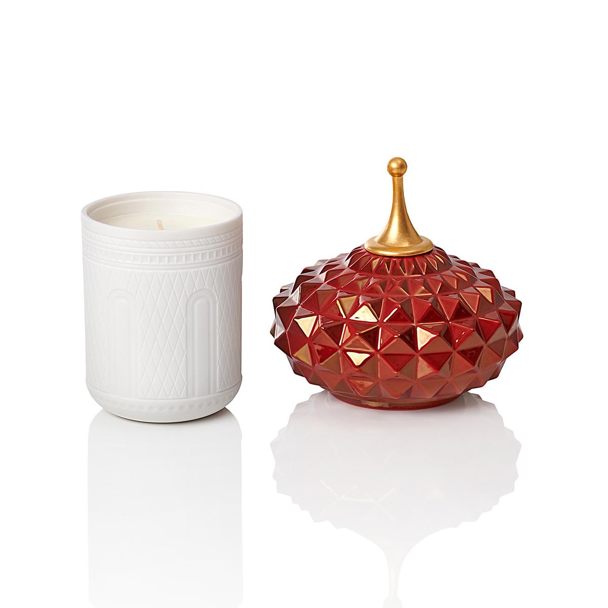 Die Duftkerzen mit roter Kuppel verbreiten einen wunderbaren exotischen Duft, der 15% Parfum enthält. Dies ist ein besonders hoher Prozentsatz bei Duftkerzen, etwa vergleichbar mit dem Parfumanteil in L´eau de Parfum. Mit dem Porzellandeckel kann die Kerze abgedeckt werden, wenn sie nicht in Gebrauch ist. Sobald das Wachs aufgebraucht ist, dient die Kerze als dekoratives Behältnis.