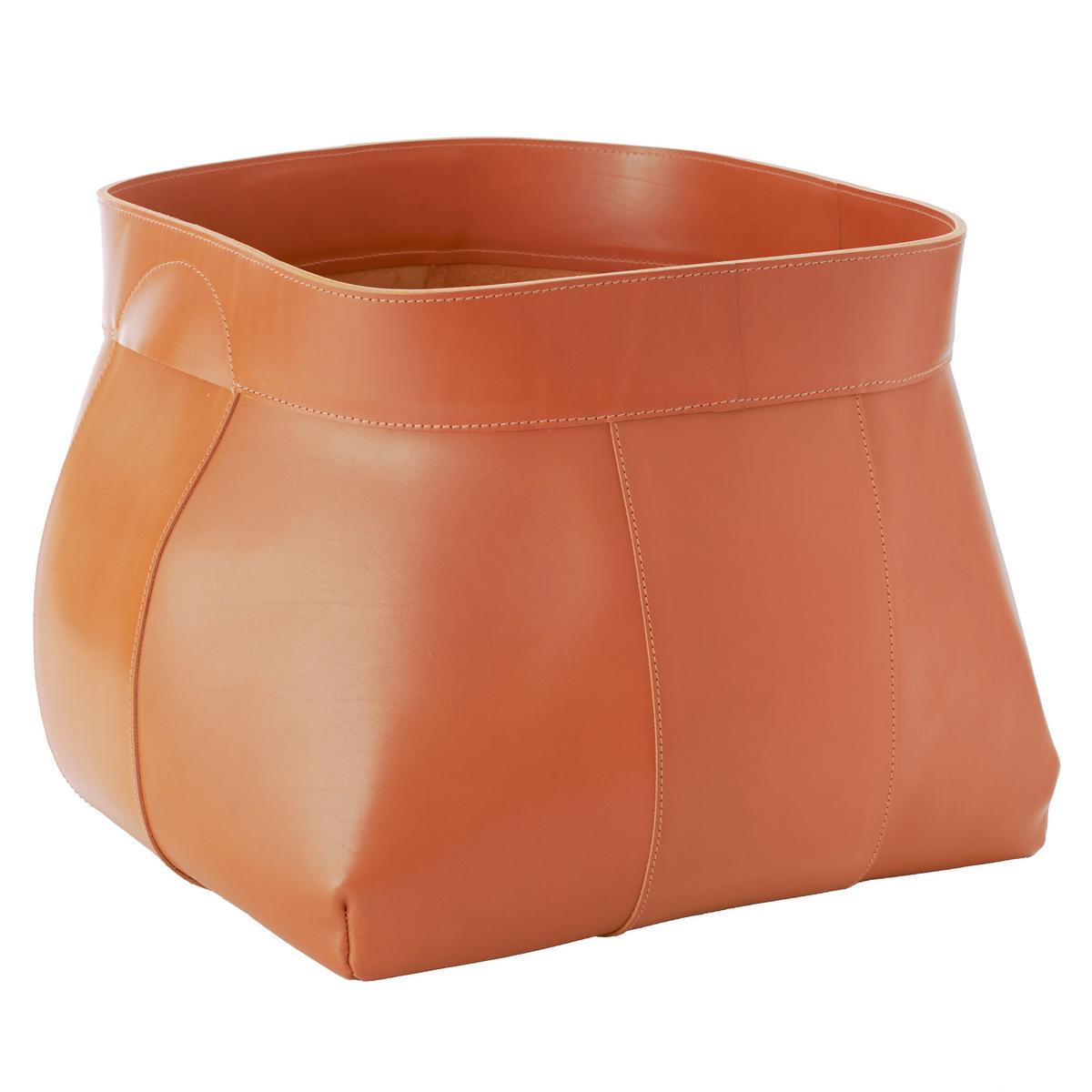 Die Aufbewahrungskörbe "Woody" sind universell einsetzbare Deko-Objekte und ein absoluter Designklassiker der Marke Rabitti 1969. Ob im Wohnzimmer oder im Schlafzimmer - die dekorativen Lederkörbe mit Griffen machen immer eine gute Figur. Zum Beispiel lassen sich in den stabilen Lederkörben Zeitschriften oder Decken verstauen. Der große Aufbewahrungskorb lässt sich auch für Holzscheite verwenden, denn Sattelleder ist extra dick und stabil. Auf zwei Seiten befinden sich am Korb Tragegriffe.