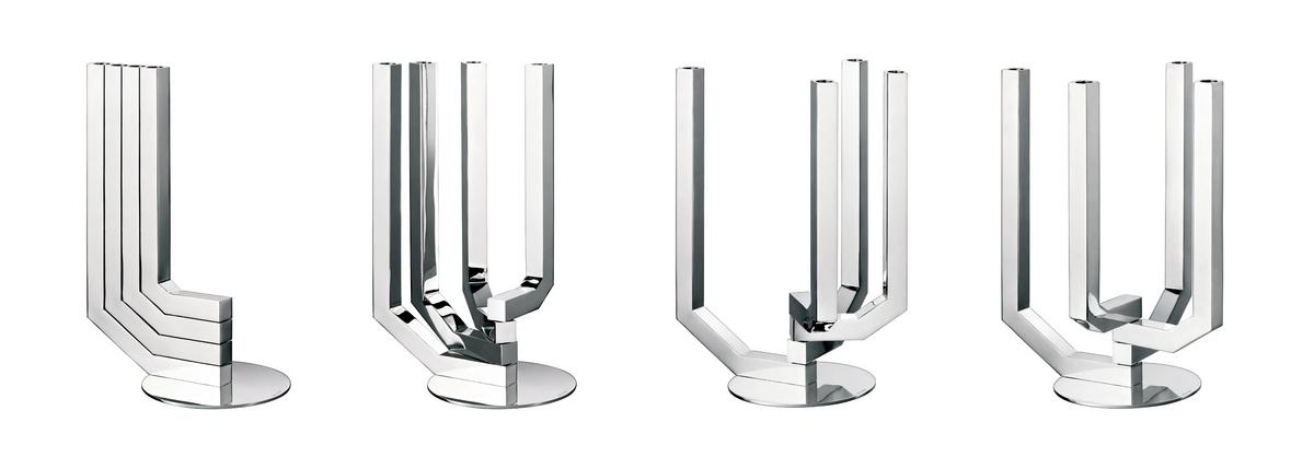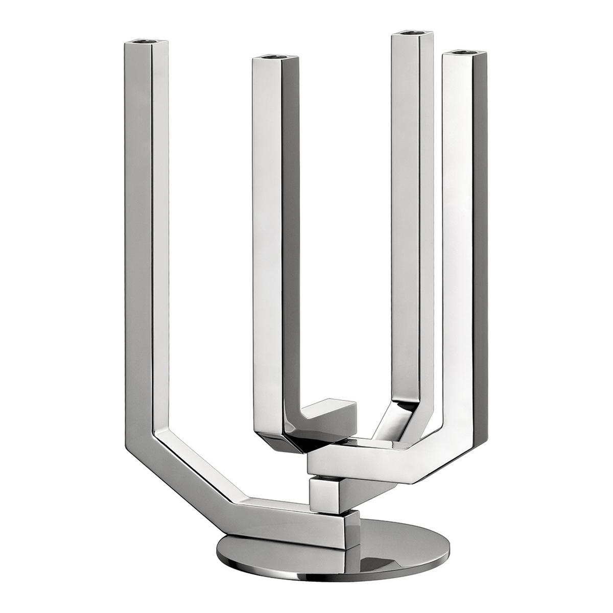 Von besonderer Raffinesse ist der drehbare Gelenkstift des 4-armigen Kerzenleuchters "Arborescence". Er erlaubt es, die vier Arme des Christofle Kerzenleuchters immer wieder neu zu positionieren. Mit jeder Drehung entsteht so eine neue Form, mit der auch der Lichtschein der Kerzen variiert.