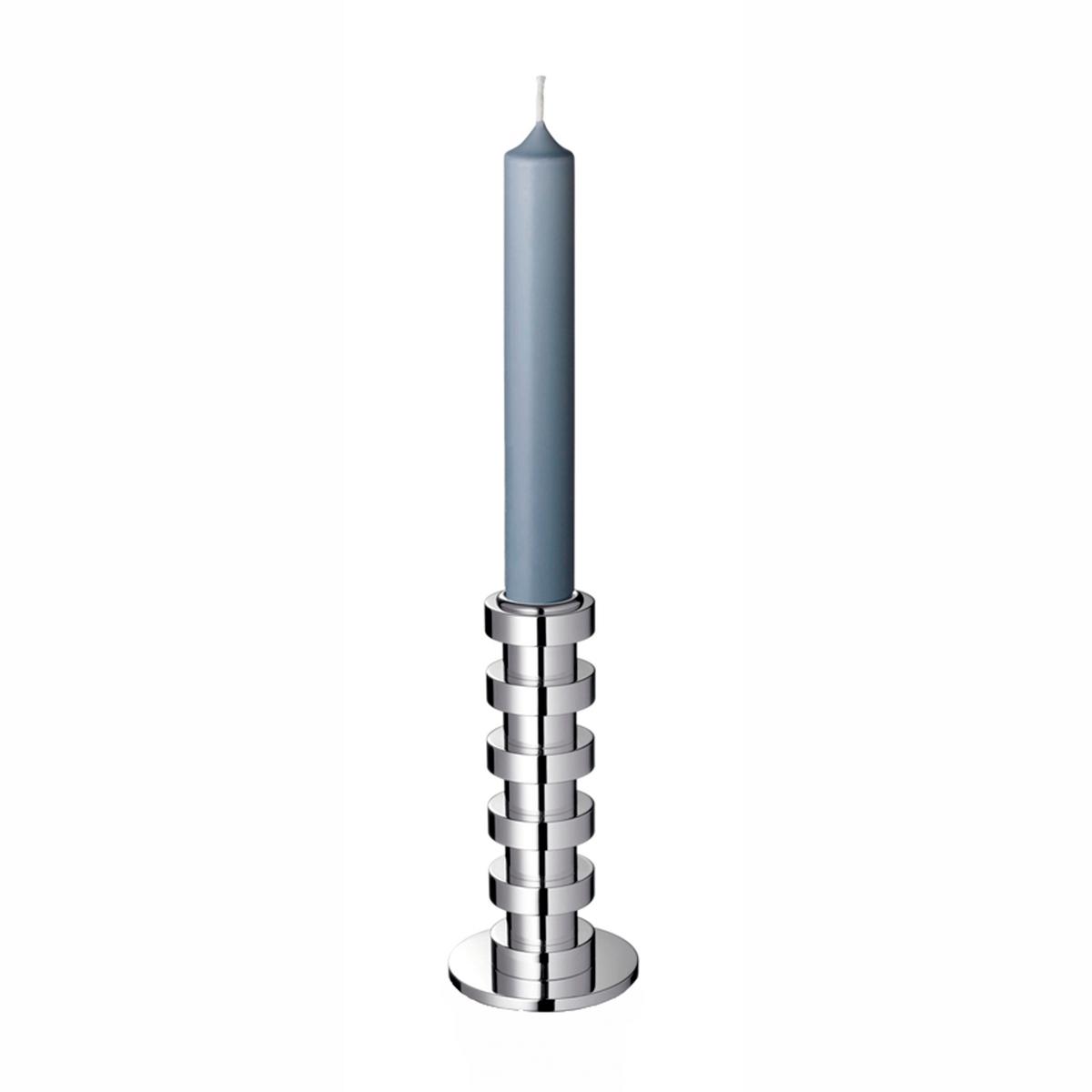 Deutlich ausgeprägte Bänder umringen die unterschiedlich hohen Zylinder der Sockel und verleihen den Kerzenleuchtern ein dominantes und klares Profil. Und das in unterschiedlichsten Ausführungen. Die französische Silberschmiede Puiforcat hat ihre Serie versilberter Kerzenhalter "Ruban" nämlich mit vier verschiedenen Leuchtern bestückt. Mal breit und gedrungen, mal schlank und höher aufragend gestaltet. Die üppigste Fassung der Kerzenleuchter lässt dabei drei Arme ausschweifen.
