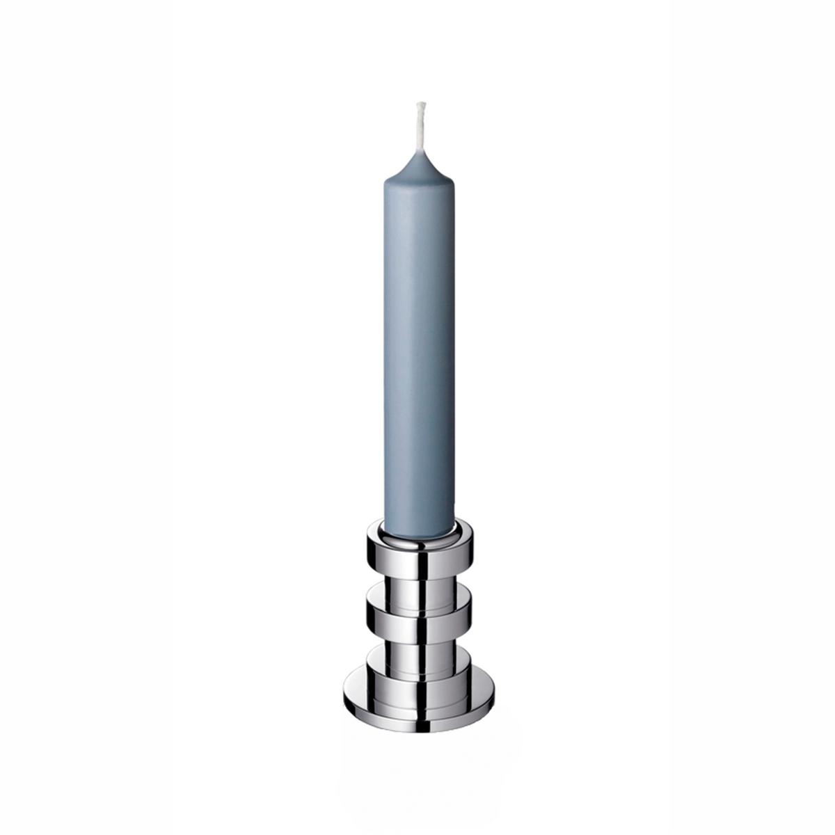 Deutlich ausgeprägte Bänder umringen die unterschiedlich hohen Zylinder der Sockel und verleihen den Kerzenleuchtern ein dominantes und klares Profil. Und das in unterschiedlichsten Ausführungen. Die französische Silberschmiede Puiforcat hat ihre Serie versilberter Kerzenhalter "Ruban" nämlich mit vier verschiedenen Leuchtern bestückt. Mal breit und gedrungen, mal schlank und höher aufragend gestaltet. Die üppigste Fassung der Kerzenleuchter lässt dabei drei Arme ausschweifen.