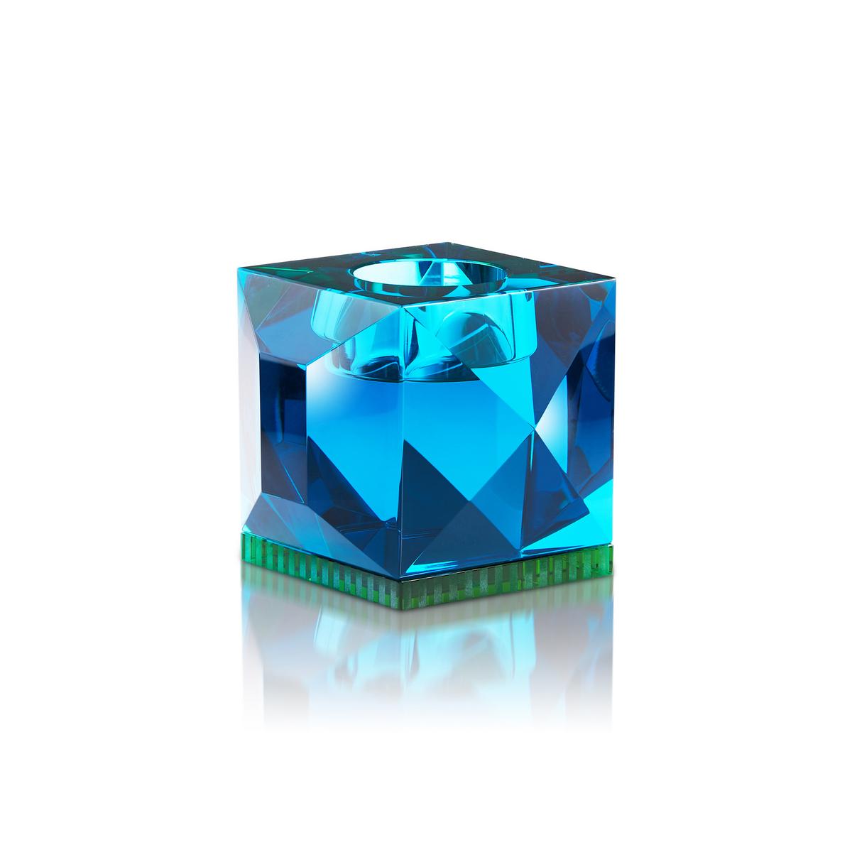 Die Teelichthalter "Ophelia" aus handgeschliffenem Kristallglas von Reflections Copenhagen funkeln wie geschliffene Edelsteine in faszinierenden Farben. Die massiven Kristallglas-Würfel sind mit einer Fußplatte verschmolzen, die mit kontrastierenden Farben und einem satinierten Streifendesign für spannende Effekte aus allen Blickwinkeln sorgt. Ein Design, das in jedem Interieur die Blicke auf sich zieht.