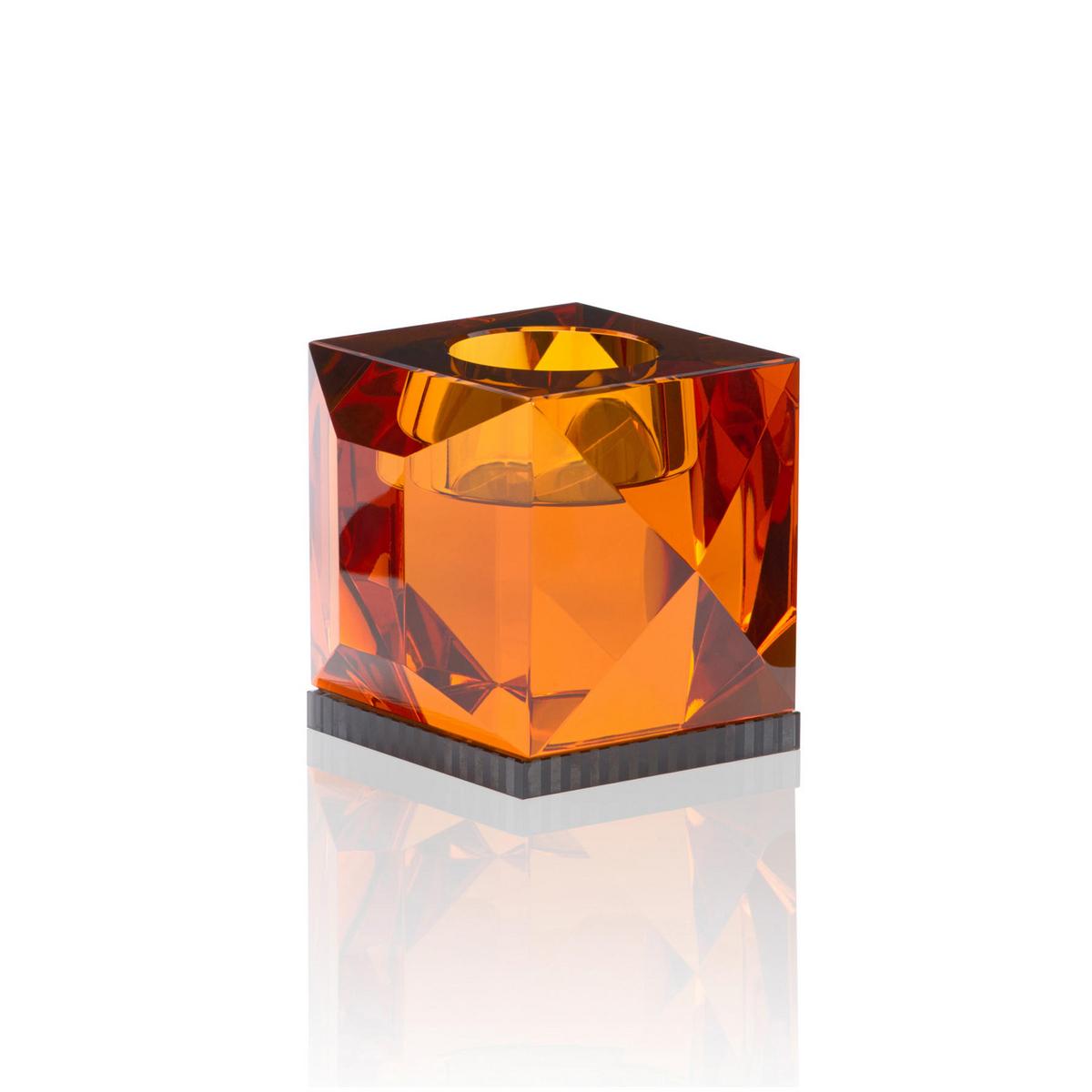 Die Teelichthalter "Ophelia" aus handgeschliffenem Kristallglas von Reflections Copenhagen funkeln wie geschliffene Edelsteine in faszinierenden Farben. Die massiven Kristallglas-Würfel sind mit einer Fußplatte verschmolzen, die mit kontrastierenden Farben und einem satinierten Streifendesign für spannende Effekte aus allen Blickwinkeln sorgt. Ein Design, das in jedem Interieur die Blicke auf sich zieht.