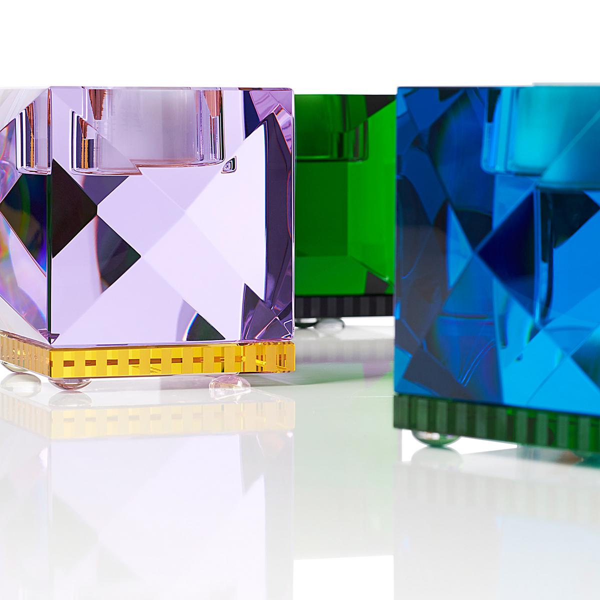 Die Teelichthalter "Ophelia" aus handgeschliffenem Kristallglas von Reflections Copenhagen funkeln wie geschliffene Edelsteine in faszinierenden Farben. Die massiven Kristallglas-Würfel sind mit einer Fußplatte verschmolzen, die mit kontrastierenden Farben und einem satinierten Streifendesign für spannende Effekte aus allen Blickwinkeln sorgt. Ein Design, das in jedem Interieur die Blicke auf sich zieht.