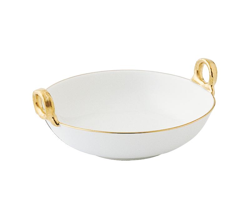 Die formschöne Schale, deren Henkel komplett vergoldet sind, wird in reiner Handarbeit gefertigt und eignet sich bestens, um edle Pralinen oder Trüffel zu reichen.