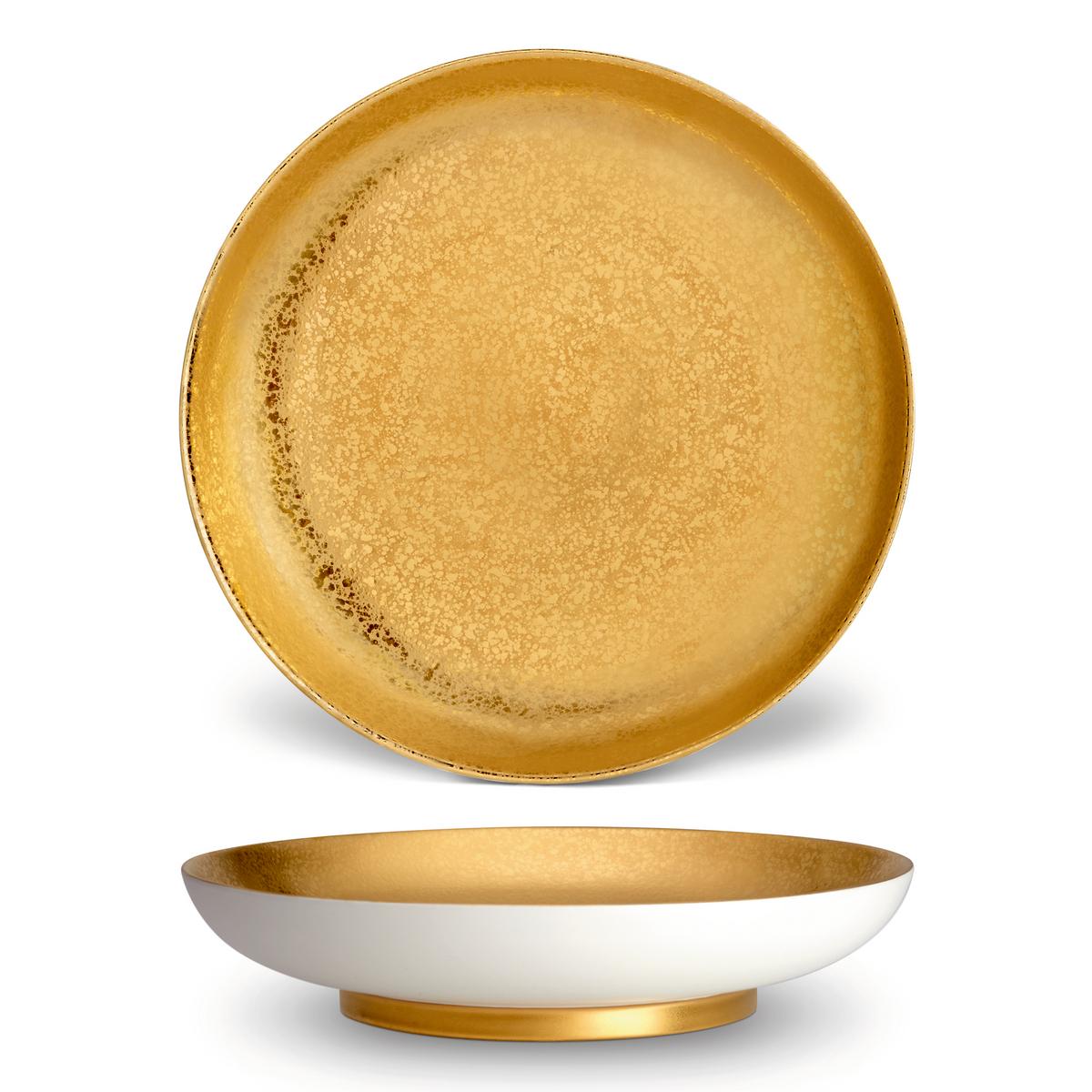 Das Service "Alchimie Gold" von L’Objet besteht aus Earthenware, einer Keramikart auf Tonbasis. Eine Veredelung mit 24 Karat Gold und die gesprenkelte Oberflächenoptik verleihen "Alchimie Gold" einen besonderen Charme und individuelles Äußeres.