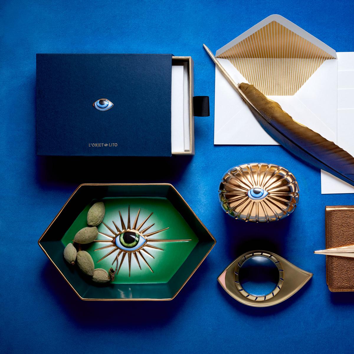 Das Auge ist ein uralter Talisman des Glücks und des Schutzes – und ein Bindeglied zwischen zwei schöpferischen Seelen. Dieses faszinierende Sinnesorgan steht im Mittelpunkt der Linie "Lito". Das Auge ist dank der künstlerischen Leistung von L’Objet unfassbar realistisch auf Porzellan gemalt, so dass man den Blick kaum davon wenden kann.