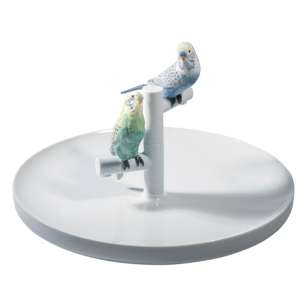 Die Schale "Parrot Romance" von Lladró ist für einen magischen Moment ein Landeplatz für zwei turtelnde Sittiche. Erst auf dem zweiten Blick entdeckt man, dass die kleinen Federvögel aus Porzellan sind. Ihre naturgetreue Form und das handgemalte Gefieder sehen täuschend echt aus — und verführen so zum Träumen. Als hätten die zwei Vögel in einem Baum Platz genommen, sitzen sie auf den kleinen "Ästen", die aus der Schale "Parrot Romance" von Lladró herausragen.