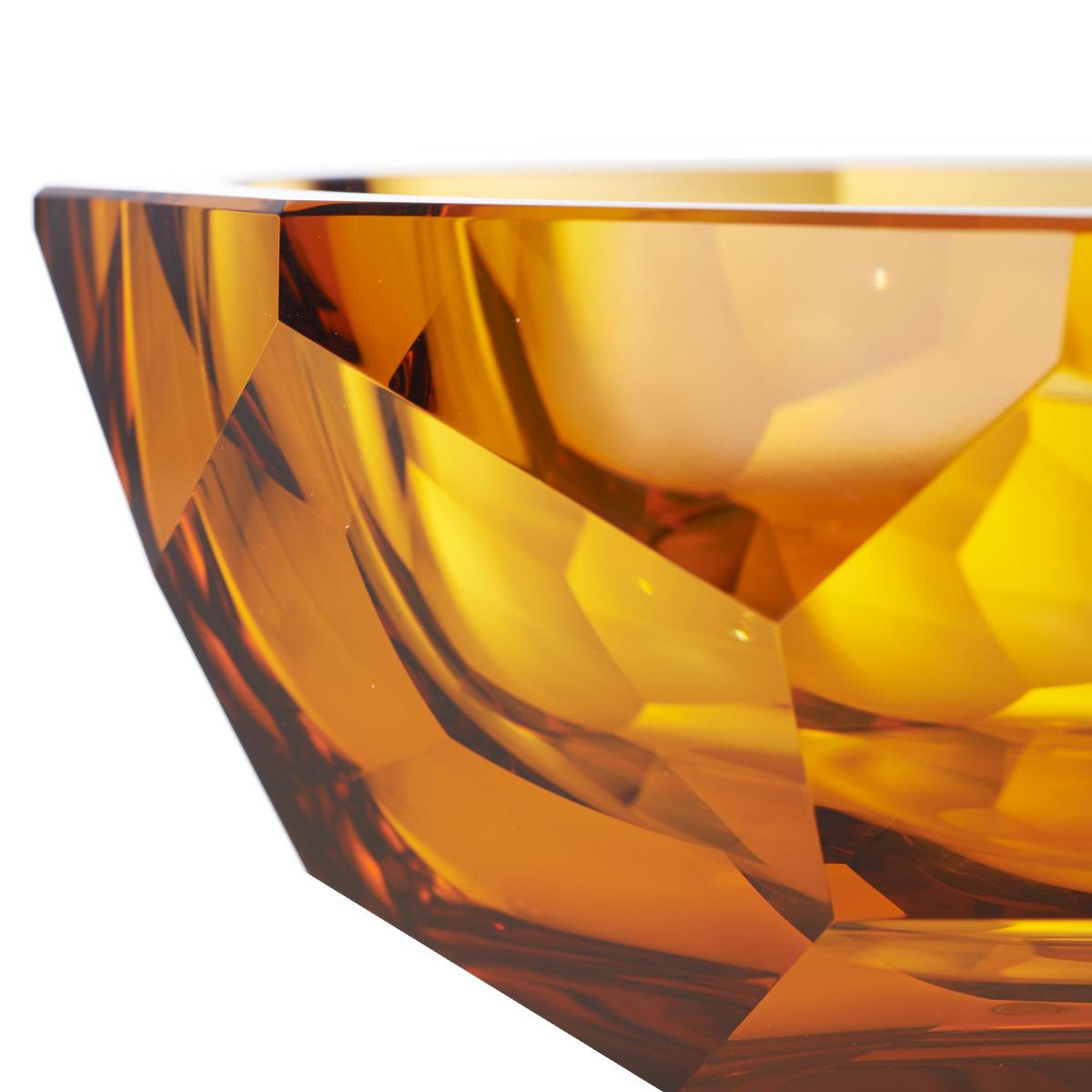 Die Schale "Cubism" von Moser wirkt fast, als wäre sie einem Werk von Georges Braque oder Pablo Picasso entnommen: Ein unregelmäßiger Facettenschliff lässt ihre Oberfläche so kantig erscheinen wie die eines kubistischen Gemäldes.