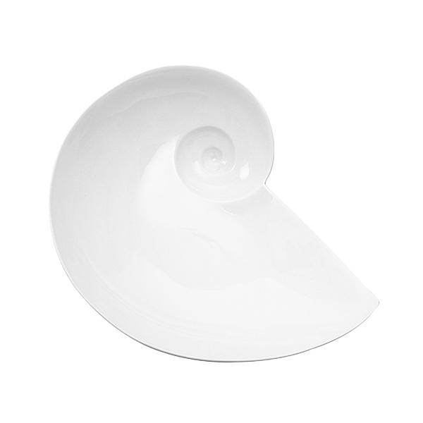 Die asymmetrische Schale in Form einer Spirale ist vom Fragment einer Mondschnecke inspiriert. Ein wahres Kunstwerk, mit dem Muehling sein Ziel geglückt ist: "Die zarte, lichtdurchlässige Schönheit des Porzellans zu Geltung zu bringen und zugleich zu versuchen, verlockende Erscheinungen der Natur einzufangen."
