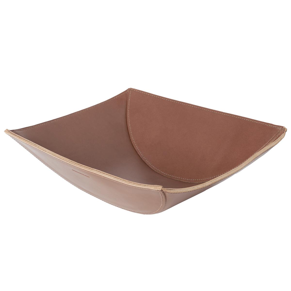 Handwerkskunst gepaart mit italienischem Design: Die von Hand vernähte Lederschale "Lambda" wird in verschiedenen Farben angeboten und bietet eine elegante Möglichkeit, Briefe oder Schlüssel abzulegen.