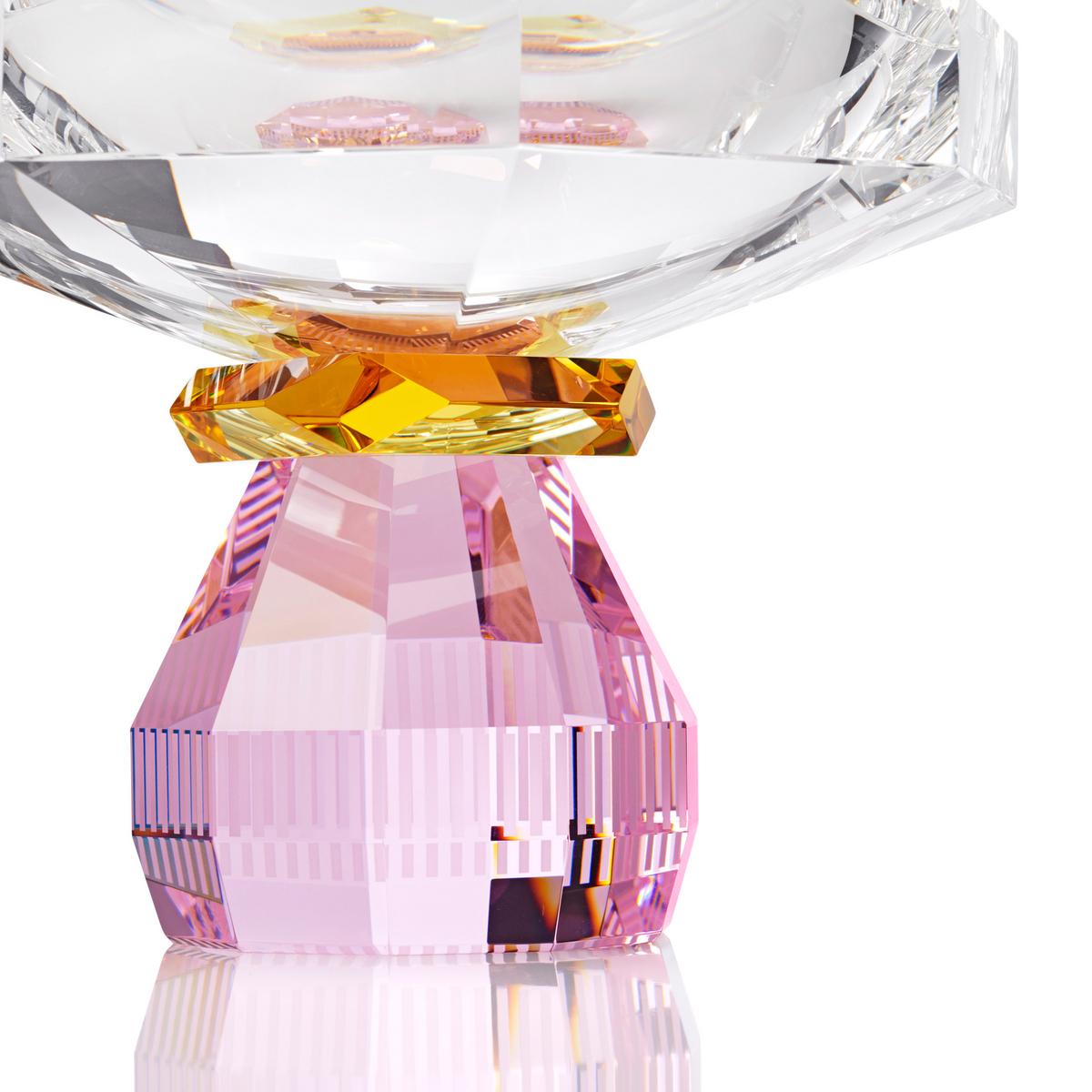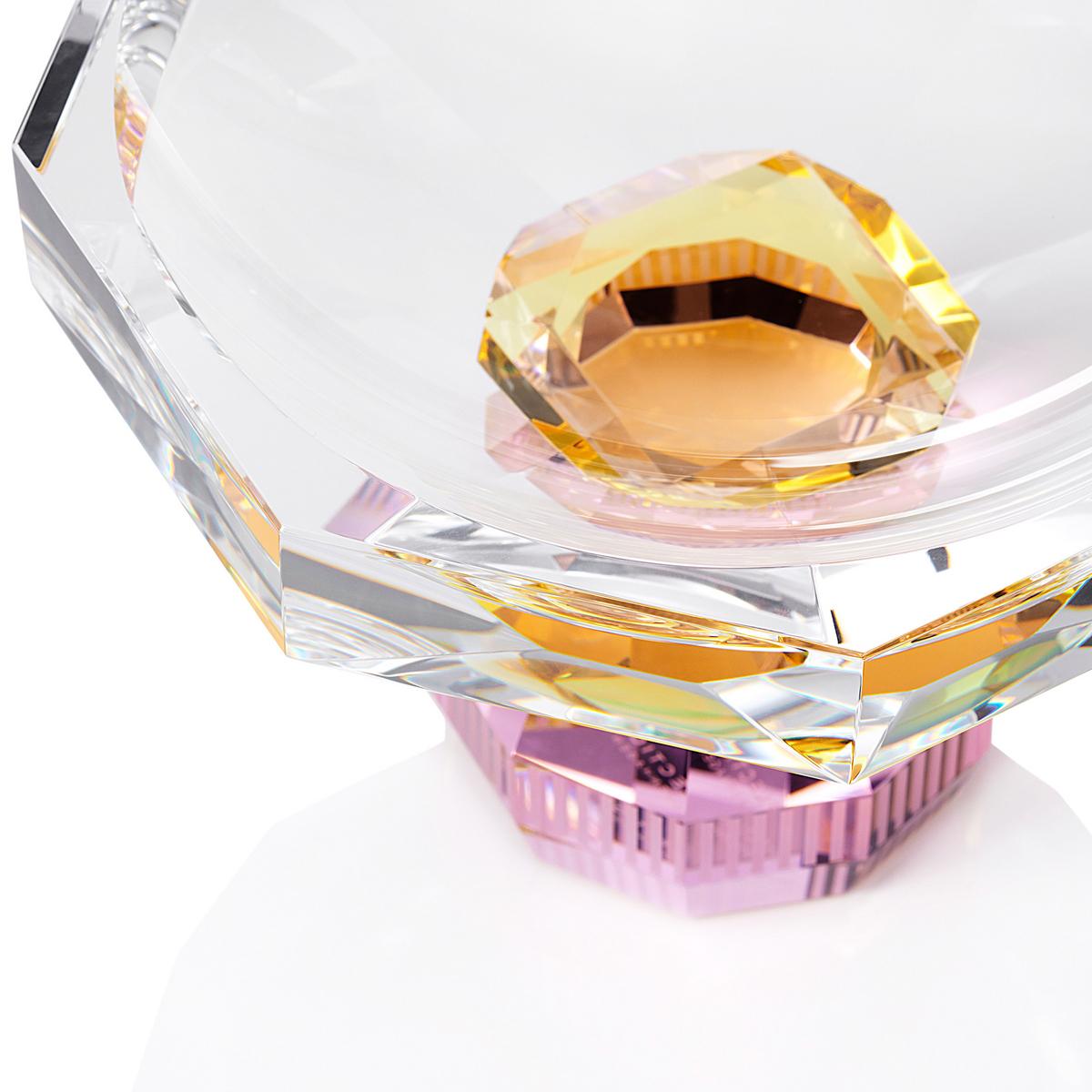 Die Schale auf Fuß "Madison" von Reflections Copenhagen verbindet die optimistische Lebensfreude des Art Déco mit modernen Formen und Farben. Sie ist 14 cm hoch, hat einen Durchmesser von 18 cm und besteht aus schwerem, handgeschliffenen Kristallglas. Die klare Schale hat einen achteckigen Rand und eine runde Vertiefung. Sie sitzt auf einem bauchigen Fuß, der in gelb und Rosé erstrahlt. Satinierte Details reflektieren sich komplex im massiven Kristallglas. Verwenden Sie die Schale auf Fuß "Madison" als Deko-Objekt und zum Präsentieren von Süßigkeiten und Früchten.