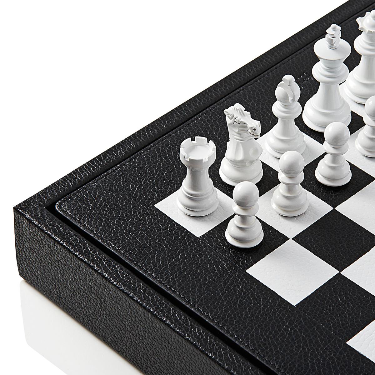 Das Schachspiel "Buffalo" von Hector Saxe ist mehr als ein Spiel, es ist ein echtes Designobjekt. Gefertigt wird das hochwertige Schachspiel in Frankreich aus feinstem Büffelleder. Die 32 Schachfiguren bestehen aus lackiertem Holz. Das Spielbrett ist abnehmbar und darunter verbirgt sich der Stauraum für die Schachfiguren. Das wunderschöne Spiel wird in einer Hector Saxe Geschenkverpackung geliefert.