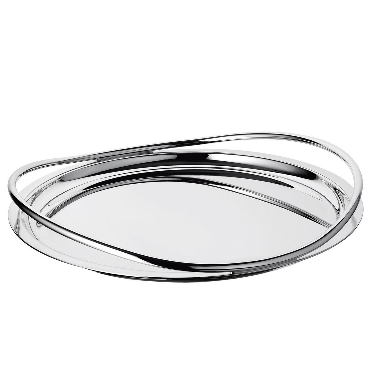 Dieses versilberte Tablett macht die Pflicht zur Kür: Andrée Putman hat den sanft geschwungenen Ring, der alle Entwürfe ihrer Christofle-Kollektion „Vertigo“ schmückt, ein wenig vergrößert und als Rundum-Griff eingesetzt. Das sieht nicht nur toll aus, das fühlt sich auch gut an! Weitere Tabletts von "Vertigo" finden Sie unten.