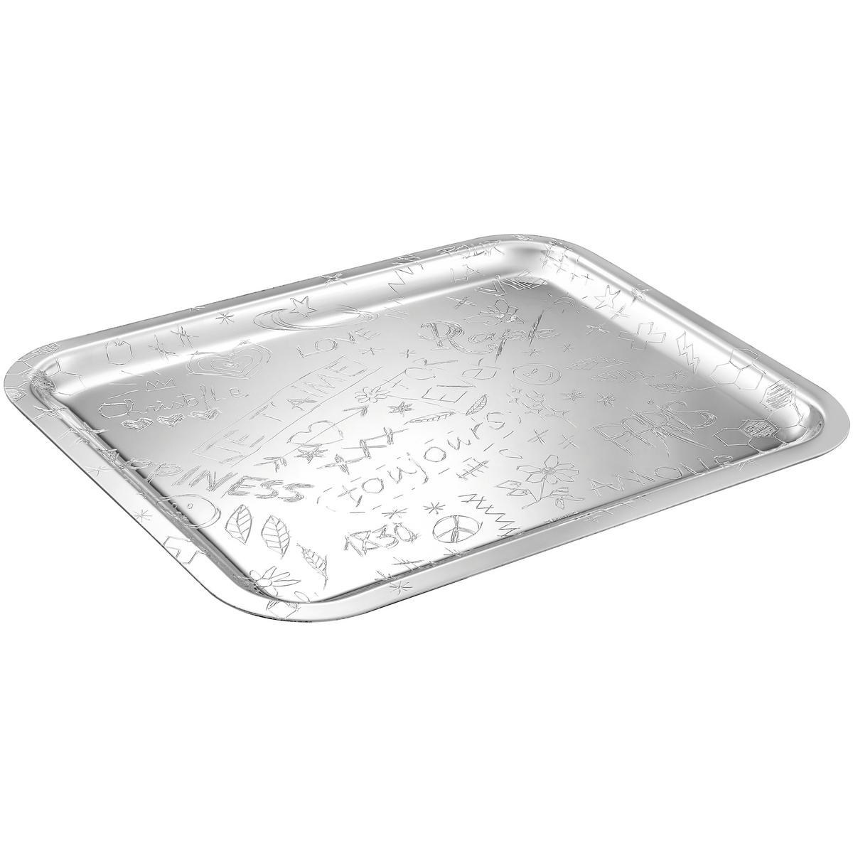 Die Tabletts "Graffiti" von Christofle beweisen: Die poppigen Schriftzüge und Kritzeleien an der richtigen Stelle sind Kunst. Üblicherweise aus dem Stadtbild bekannt, zieren sie hier ein Silbertablett.