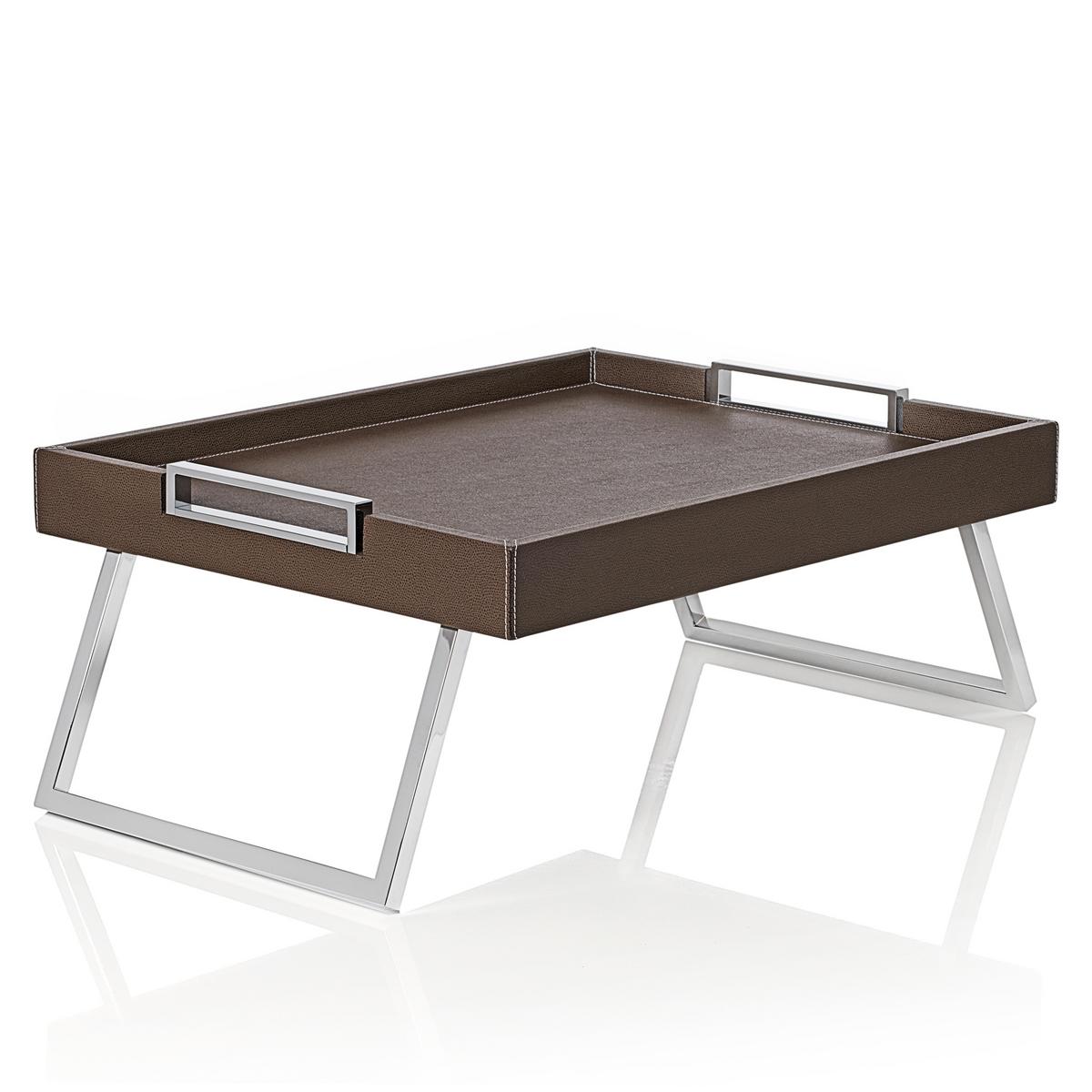 Mit den Bett-Tabletts "Vic" von GioBagnara steht einem ausgiebigem Frühstück im Bett nichts mehr im Weg. Sehr praktisch sind diese Tabletts zum Beispiel auch auf der Couch. Die mit Kalbsleder bezogenen Tabletts von GioBagnara besitzen Griffe aus Chrom. Ebenso sind die Standbeine der Tabletts aus stabilem Chrom und je nach Bedarf ausklappbar oder einklappbar. Die Unterseite der Bett-Tabletts "Vic" ist aus braunem Wildleder.