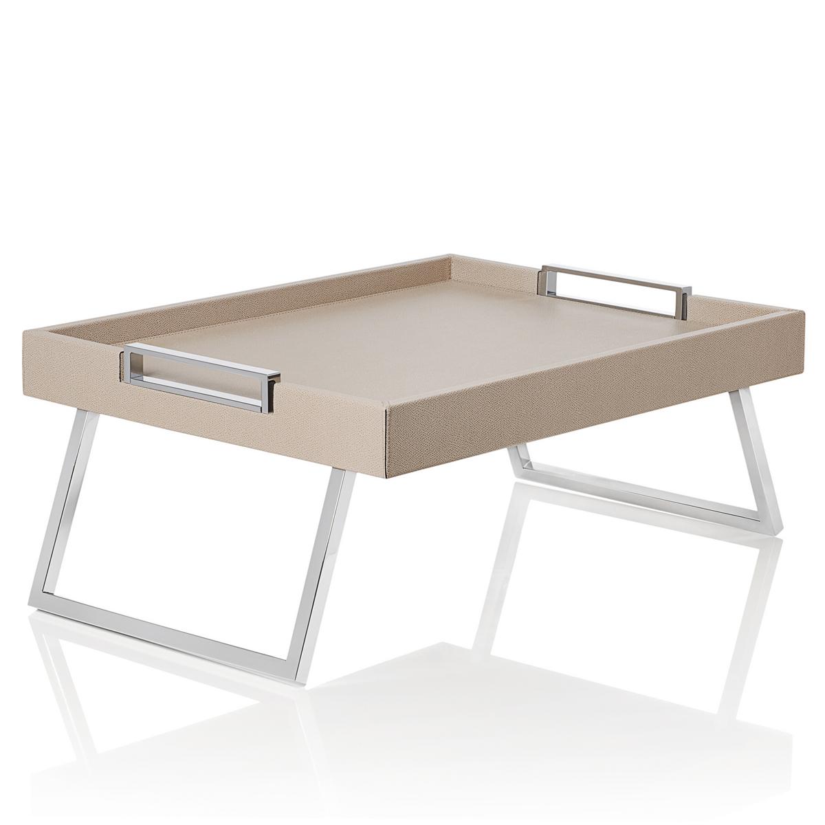 Mit den Bett-Tabletts "Vic" von GioBagnara steht einem ausgiebigem Frühstück im Bett nichts mehr im Weg. Sehr praktisch sind diese Tabletts zum Beispiel auch auf der Couch. Die mit Kalbsleder bezogenen Tabletts von GioBagnara besitzen Griffe aus Chrom. Ebenso sind die Standbeine der Tabletts aus stabilem Chrom und je nach Bedarf ausklappbar oder einklappbar. Die Unterseite der Bett-Tabletts "Vic" ist aus braunem Wildleder.