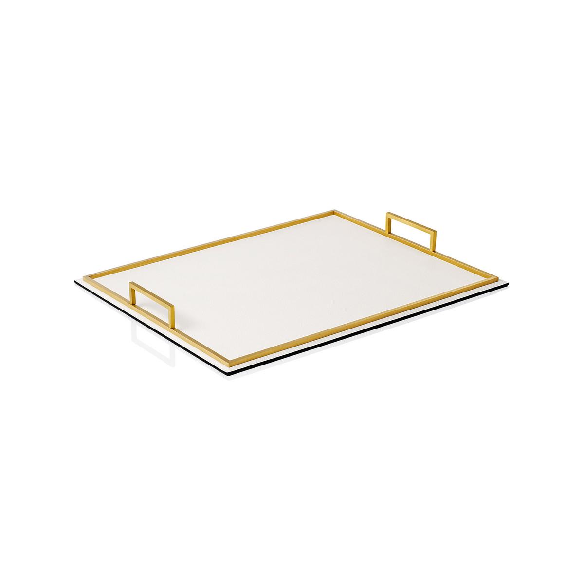 Die rechteckigen Tabletts "Defile" von GioBagnara bestechen durch ihre klare Formensprache. Sie sind wunderschöne Beispiele für die Kunstfertigkeit der italienischen Manufaktur – jedes Tablett entsteht in aufwendiger Handarbeit in Italien. Das Leder der Tabletts lässt sich mit einem weichen Tuch und milder Seife leicht reinigen. Für einen sicheren Stand sorgt der Boden aus dunkelbraunem Wildleder.