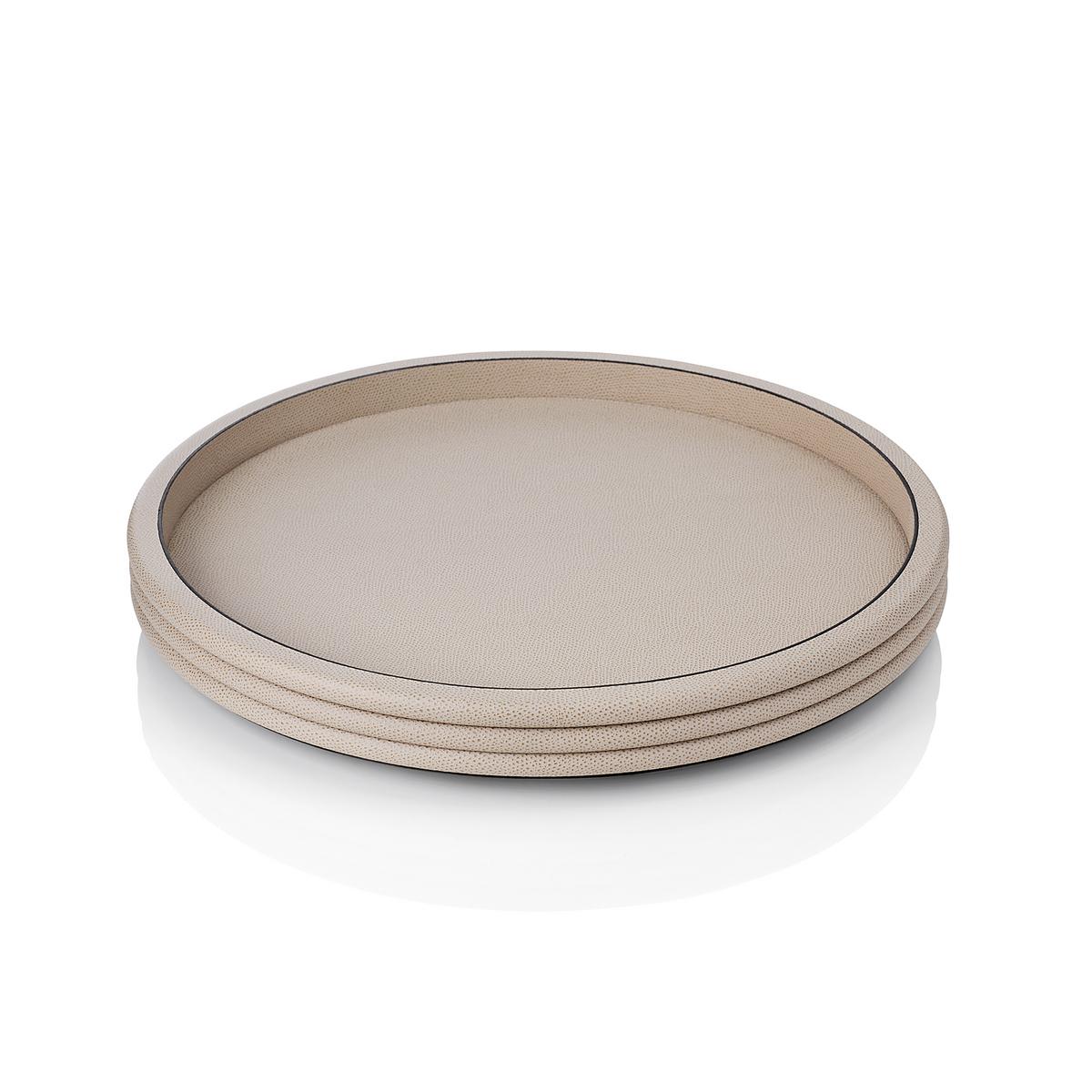 Die dekorativen Tabletts "Scala" bestehen aus feinstem, kratz- und wasserfesten Kalbsleder. Die wasserabweisende Lederoberfläche trotzt Flecken jeglicher Art und lässt sich mit einem weichen Tuch und milder Seife leicht reinigen. Für einen leicht erhöhten Stand sorgen die vier Füßchen unter dem Tablett. Fast wirkt es so, als ob die Tabletts leicht schweben.