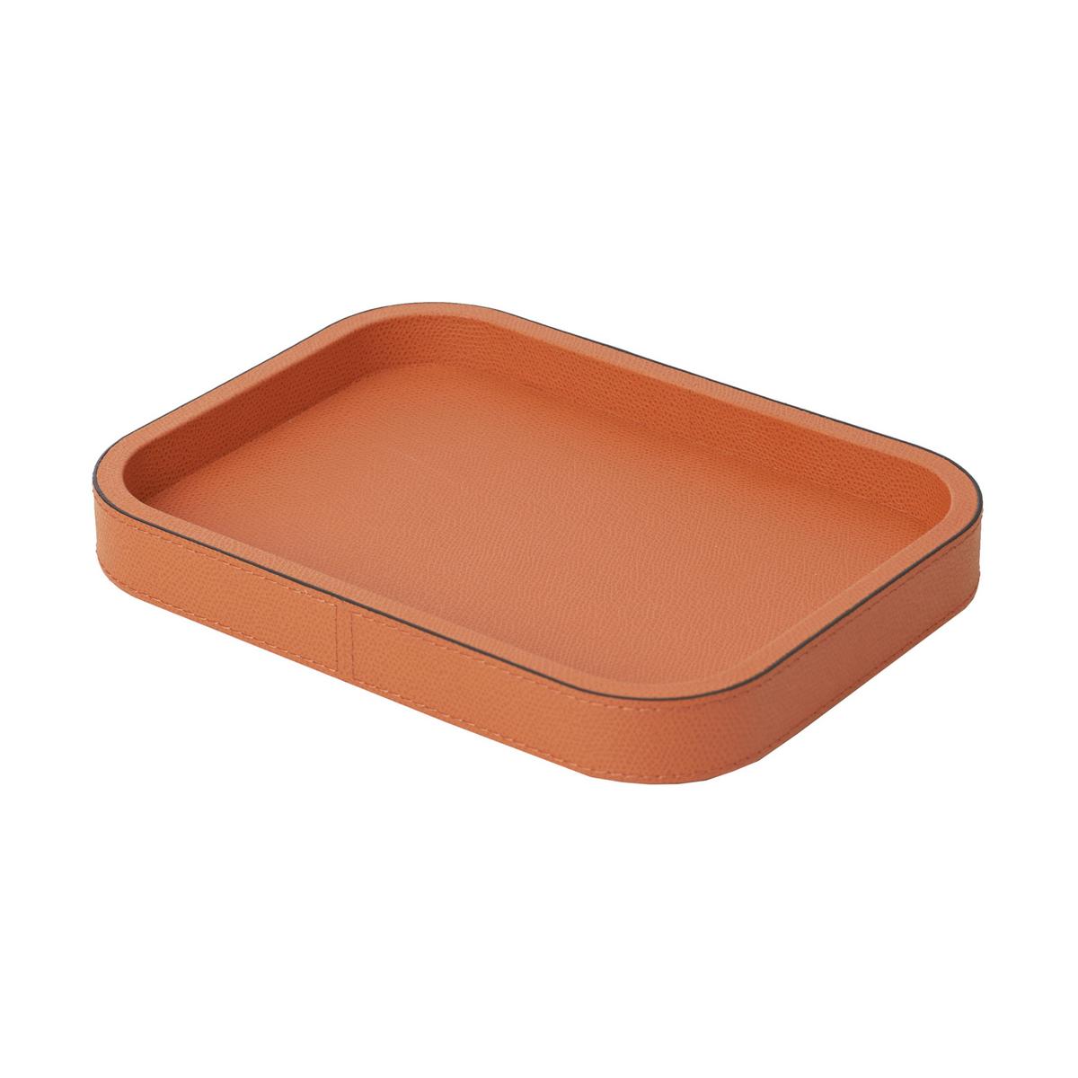 In puncto Variationsmöglichkeiten eines Tabletts ist GioBagnara kaum zu übertreffen. Die stapelbaren Ledertabletts "Polo" gibt es in zwei verschiedenen Größen (L17,5 x B11,5 cm und L23,5 x B17,5 cm) und jeweils in vier verschiedenen Tiefen (H1,5 cm, 3 cm, 5,5 cm und 8 cm). Sie können flexibel aufeinandergestapelt und miteinander kombiniert werden.