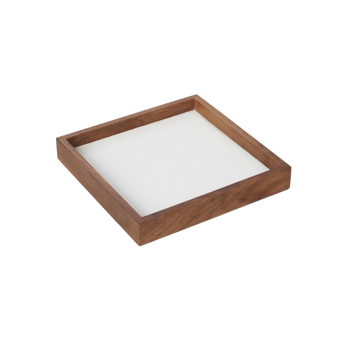 Die Kollektion "Phorma" von GioBagnara spielt mit unterschiedlichen Tablettformen und Tablettgrößen. Wenn auch noch unterschiedliche Lederfarben dazukommen, gibt es schier unendlich viele Kombinationsmöglichkeiten. So passen die kleinen Tabletts perfekt in die großen Tabletts. Zusätzlich entsteht ein dreidimensionaler Effekt, welcher der schönen Holzumrandung mit Walnussholz geschuldet ist.
