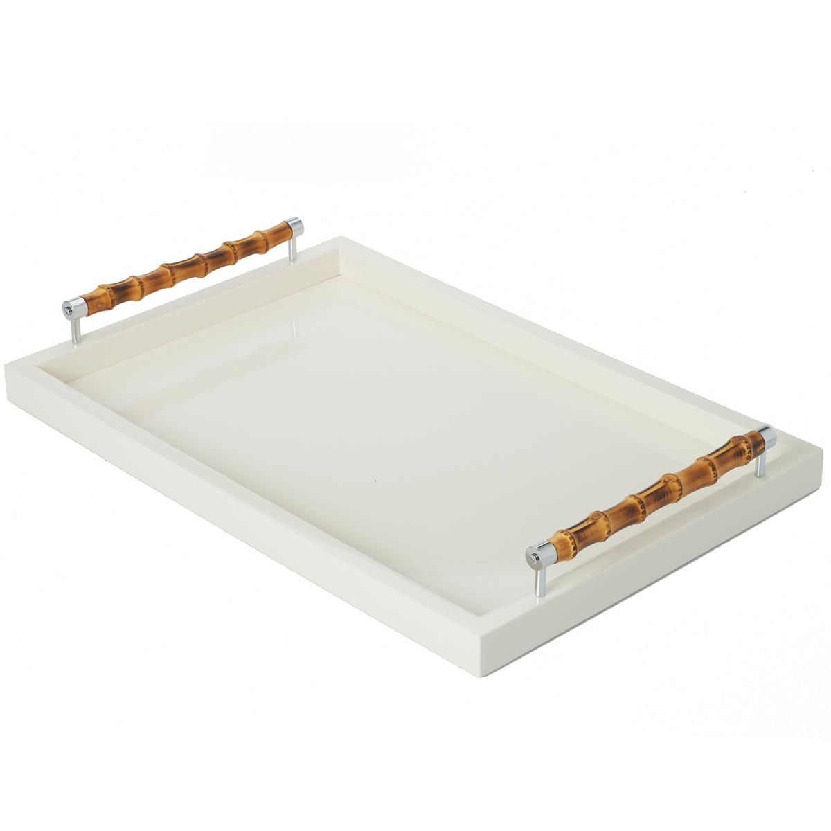 Die lackierten Tabletts in Elfenbein mit Bambusgriffen sind handwerkliche Meisterwerke der italienischen Manufaktur Riviere.