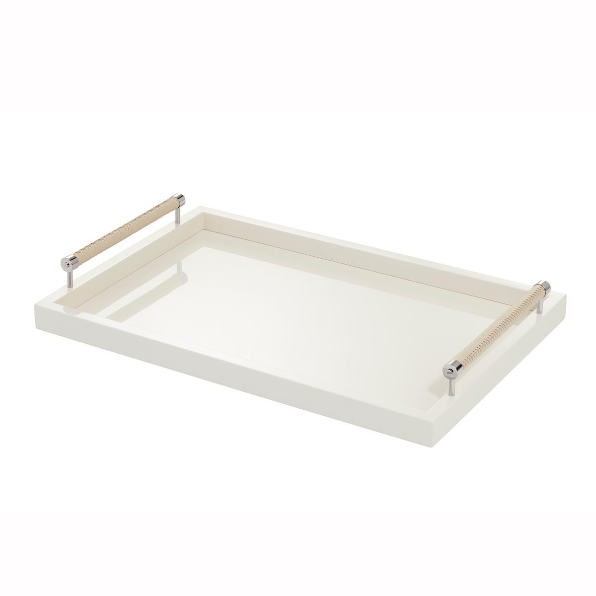 "Ein Eyecatcher: lackiertes Tablett von Riviere, Griffe aus Chrom mit handgeflochtenem Rindsleder."