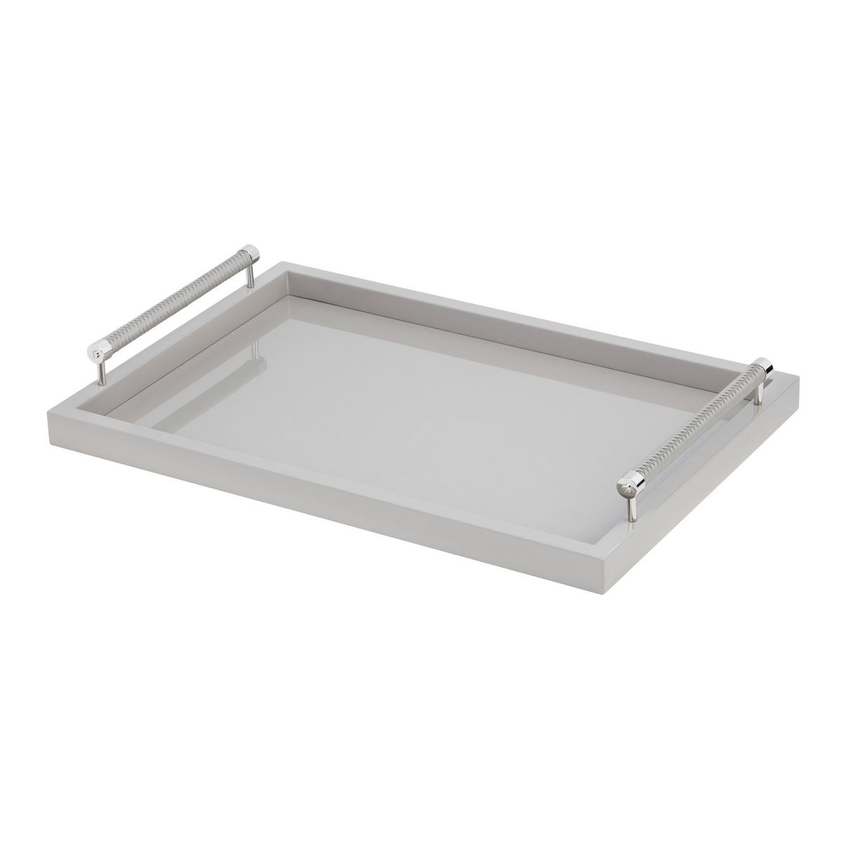 "Dank zahlreicher von Hand aufgetragener Lackschichten erhält dieses Tablett der italienischen Manufaktur Riviere eine irisierende Tiefe. Edel die lederbezogenen verchromten Griffe."
