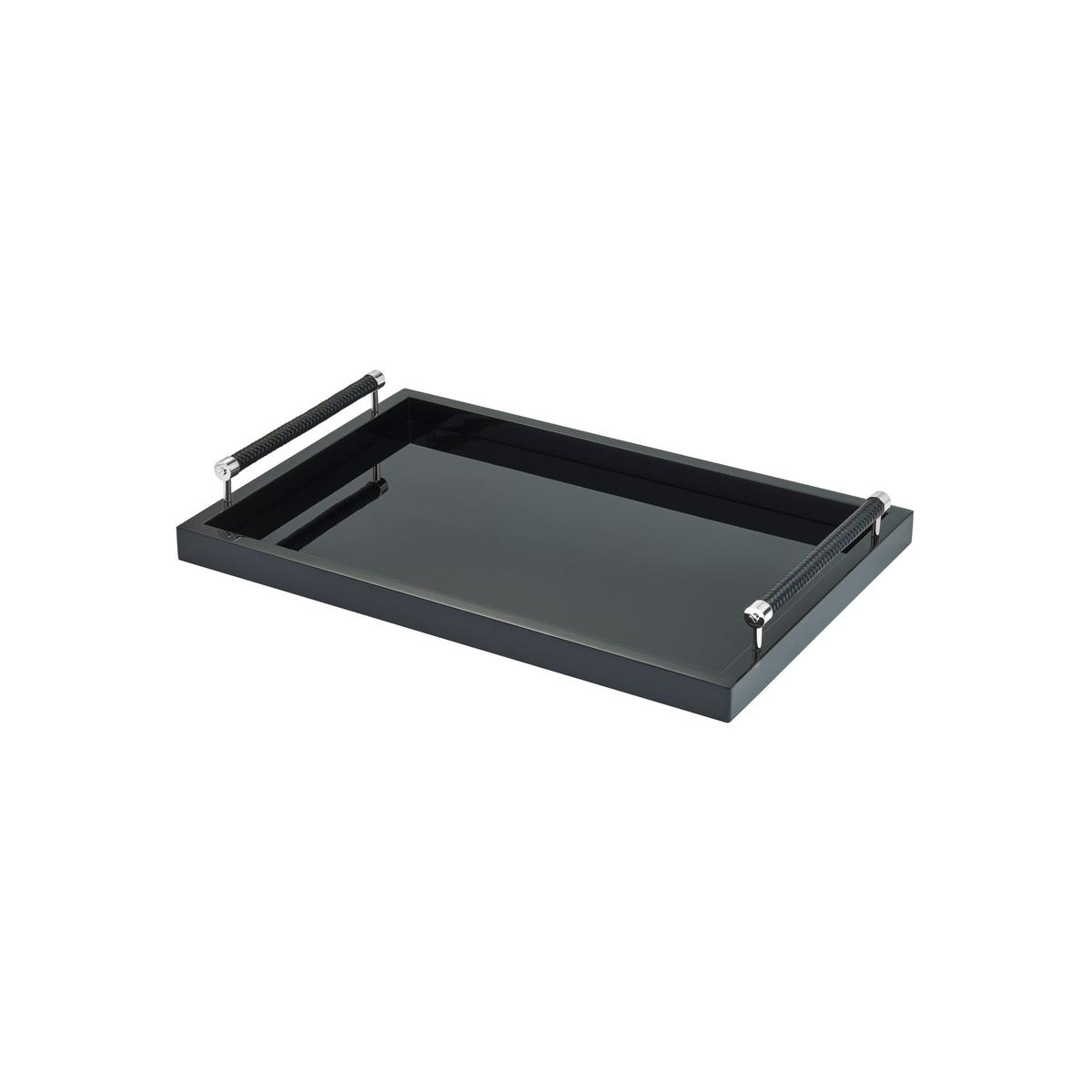 "Dank zahlreicher von Hand aufgetragener Lackschichten erhält dieses Tablett der italienischen Manufaktur Riviere eine irisierende Tiefe. Edel die lederbezogenen verchromten Griffe."
