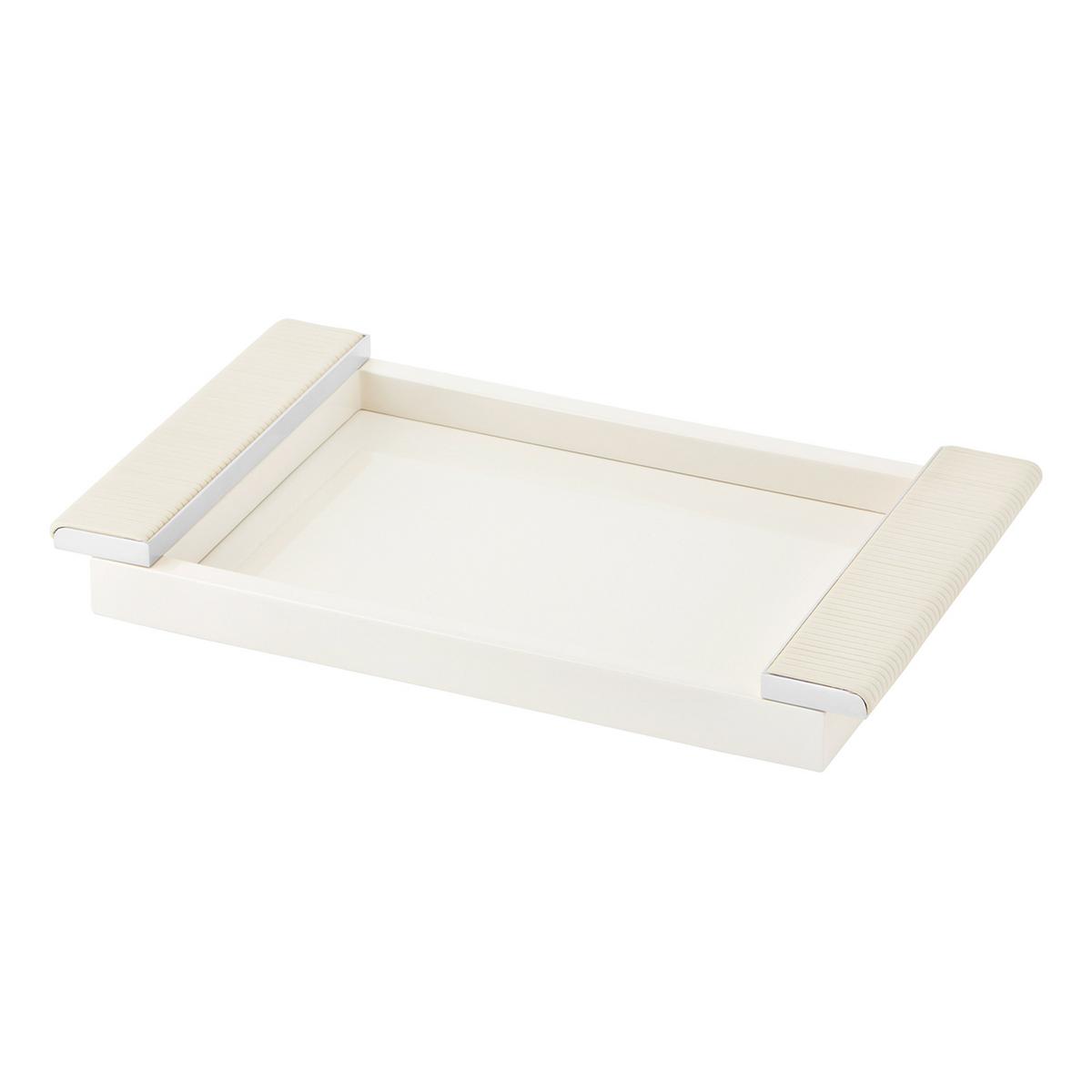 Die hochwertige Verarbeitung und luxuriöse Ausstrahlung machen die Tabletts "Tesoro" von Riviere zu wahren Deko-Highlights. Von Hand aufgetragene Lackschichten veredeln die eleganten Tabletts "Tesoro". Die Griffe sind verchromt bzw. vergoldet und mit feinstem Rindsleder bezogen, das von Hand aufgetragen wird.