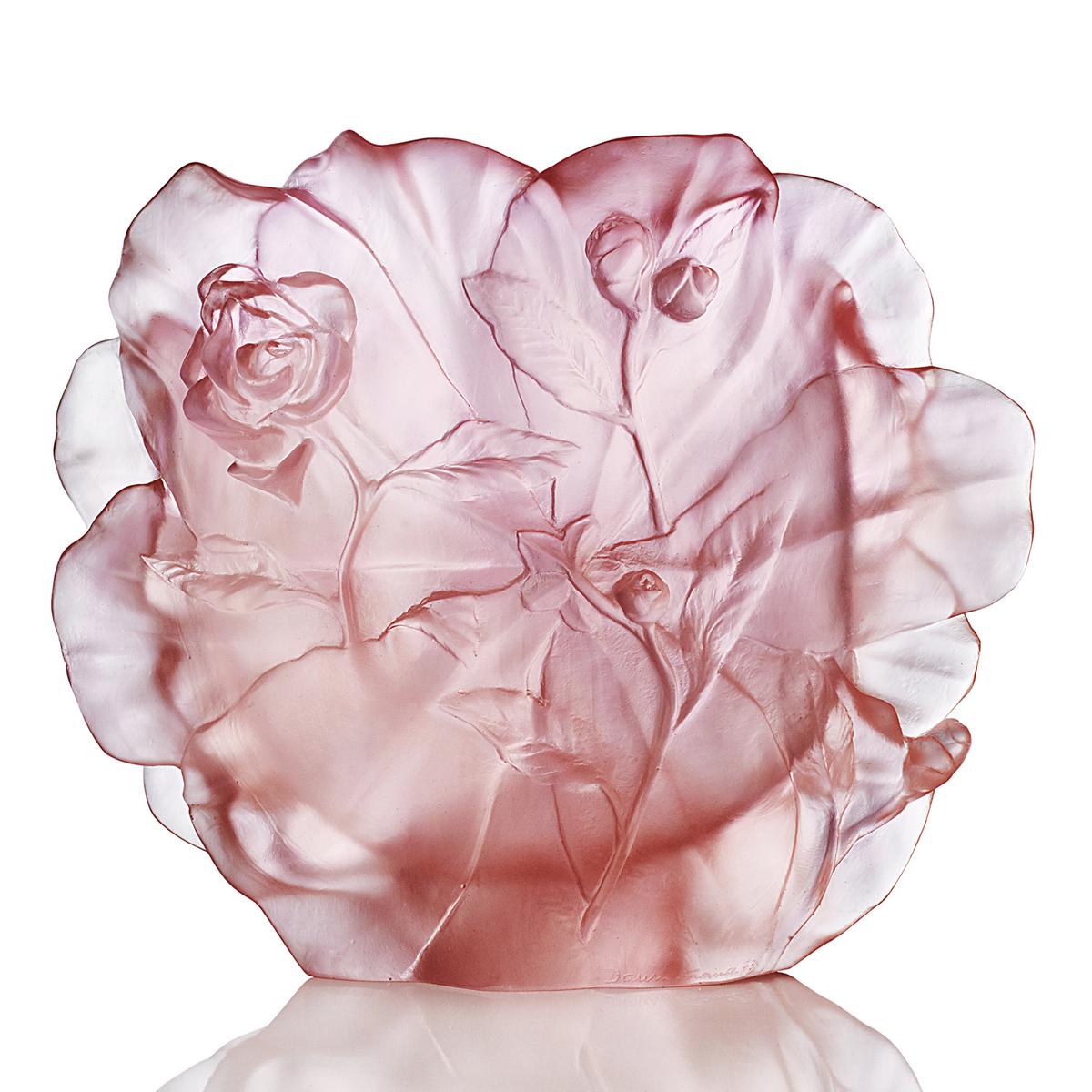 Die samtige Oberfläche ist ein besonderes Markenzeichen der Kunstobjekte von Daum. Kleine in das Glas eingeschlossene Luftbläschen sind möglich und ein Zeichen für diesen besonderen Herstellungsprozess.