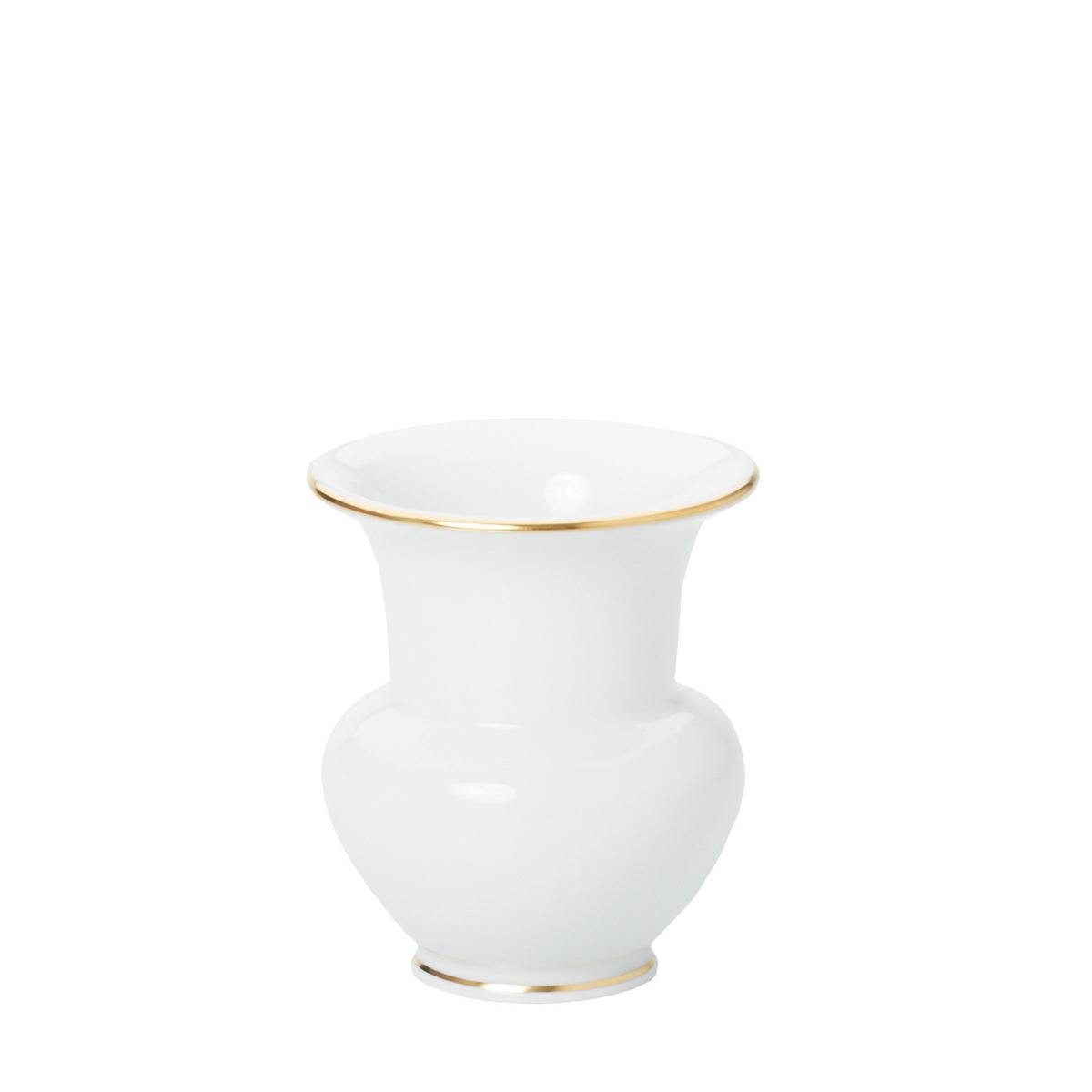 Die Vasen "Fidibus" sind in drei Größen erhältlich, je ganz in Weiß oder mit einem feinem Goldrand.