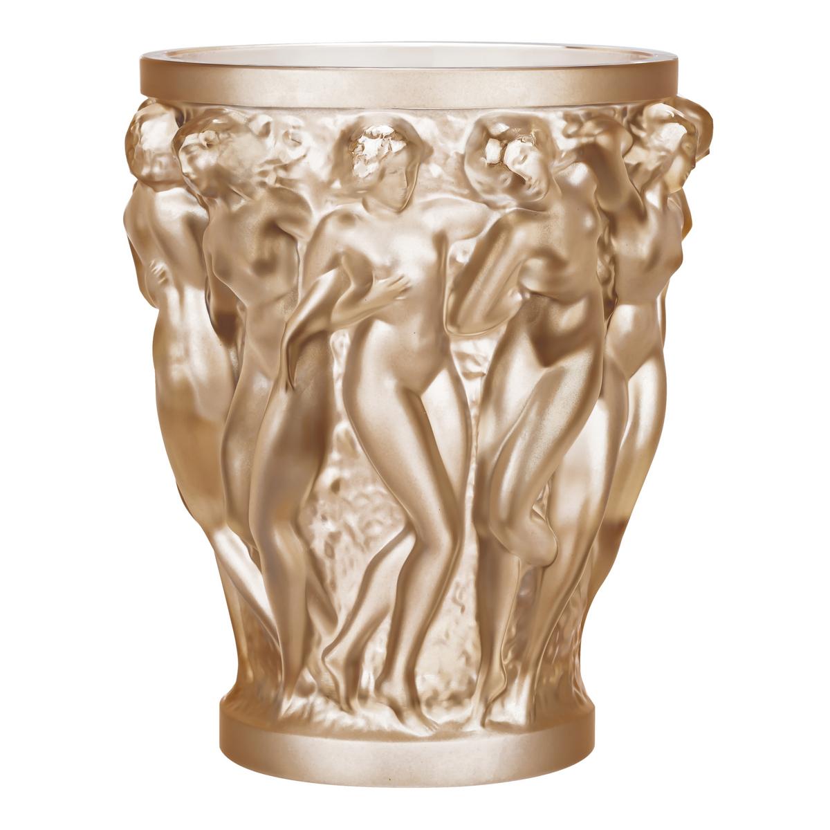 Die Vasen "Bacchantes" von Lalique werden nach wie vor in Frankreich aus feinstem Kristallglas per Hand hergestellt und geschliffen. Die wunderschönen Lalique Vasen sind mit ihren 24 Zentimetern Höhe und fast 6 Kilogramm Meisterstücke ganz besonderer Klasse, die immer alle Blicke auf sich ziehen werden.