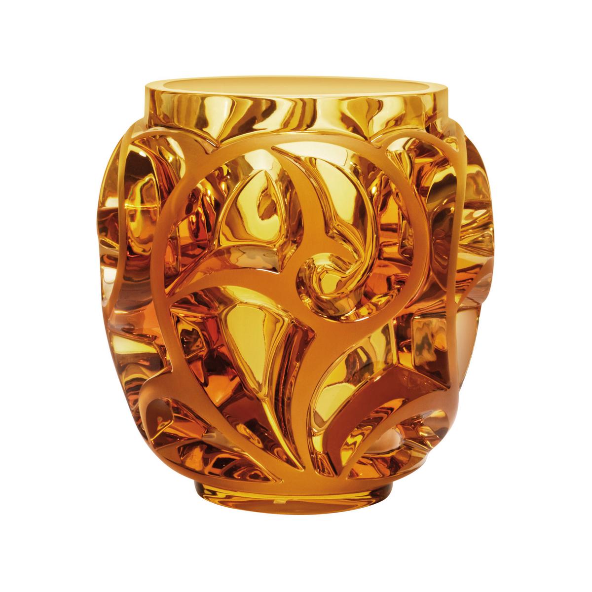 Berühmt wurde die Marke Lalique für ihre außergewöhnlichen Glasskulpturen. In diese Reihe gesellt sich auch die Vase "Tourbillons". Das Kristallglas der Vasen "Tourbillons" wird handgeschliffen und ist teilweise satiniert. Das französische Wort "tourbillon" bedeutet übersetzt Wirbel oder Strudel. Das ist nicht verwunderlich, denn das Design der Vasen ist geprägt von vielen Wirbeln und Windungen. Das abstrakte Design von "Tourbillons" ist inspiriert von den sich öffnenden Blättern einer Farnpflanze.
