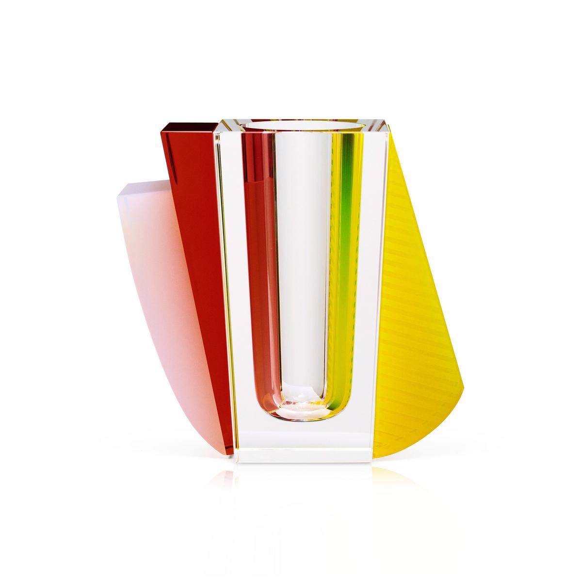 Die Farben und Formen der Deko-Objekte aus Kristallglas von Reflections Copenhagen stellen mit ihrem ganz eigenen Stil gestalterische Traditionen infrage. Die Vase "Raleigh" kombiniert farbige Elemente in Gelb, Rot und Grün, die passgenau miteinander verschmolzen sind. Die Farben reflektieren sich gegenseitig, wodurch neue Farbschattierungen entstehen. Aus allen Blickwinkeln gibt es neue Effekte und Details zu entdecken.
