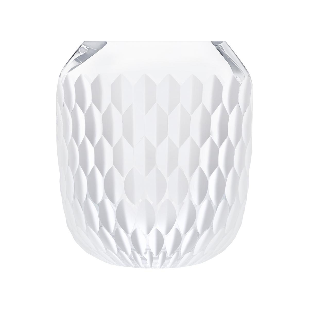 Die satinierte Vase "Folia" von Saint-Louis ist ein Musterbeispiel für perfekte Handwerkskunst und edelstes Kristallglas. Das feine Kristallglas wird in der traditionsreichen Kristallerie Saint-Louis von Mund geblasen und per Hand geschliffen. Die satinierte Vase "Folia" trägt das Erkennungszeichen der Kollektion – dicht aneinander gereihte konische Schliffe erinnern an Blätter im Wald. Das satinierte Finish der Vase gibt ihr ein frostig anmutendes Finish, so als ob ein zarter Raureif auf den Blättern liegt.