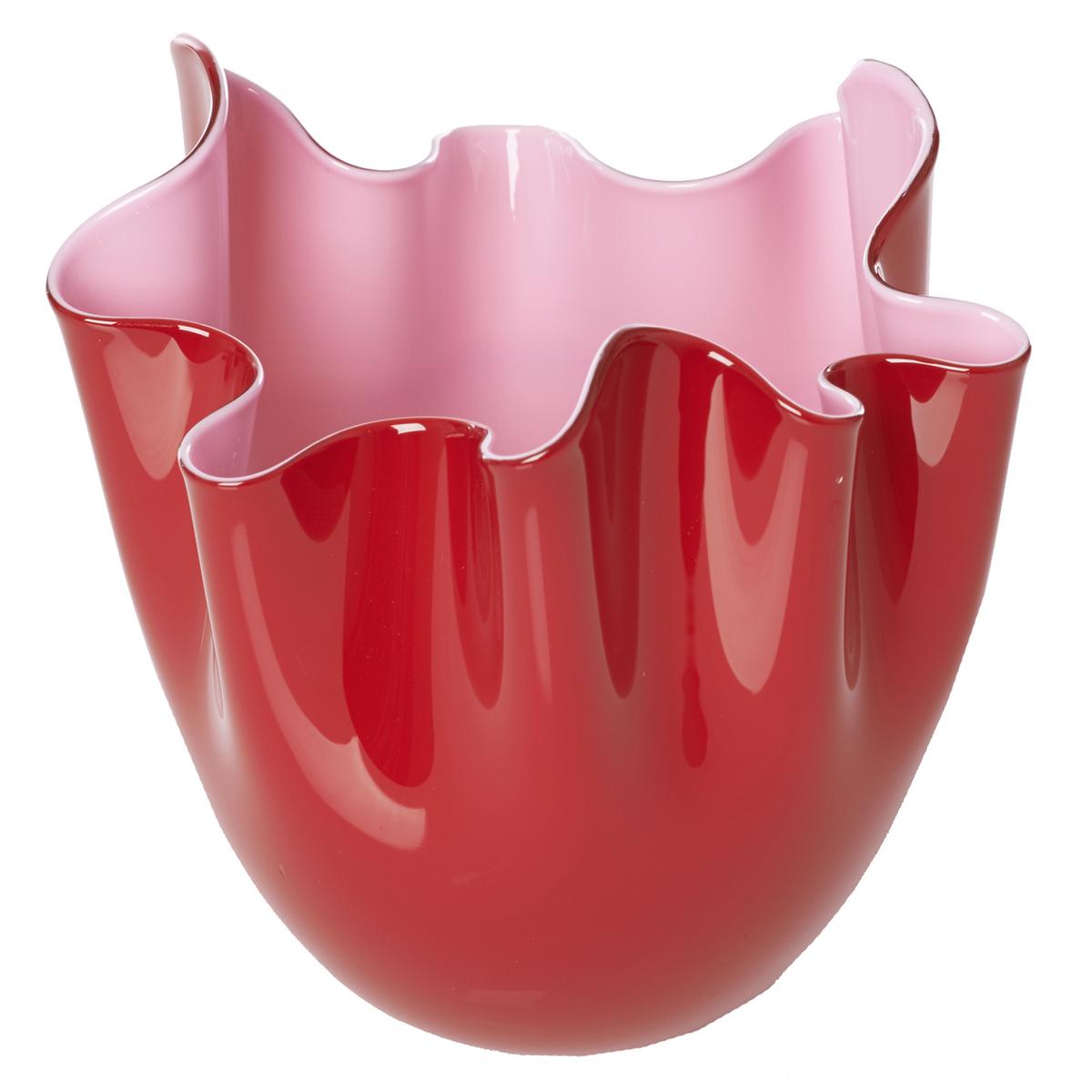 Vase "Fazzoletti Bicolore", H 31 cm, rot/rosa von Venini