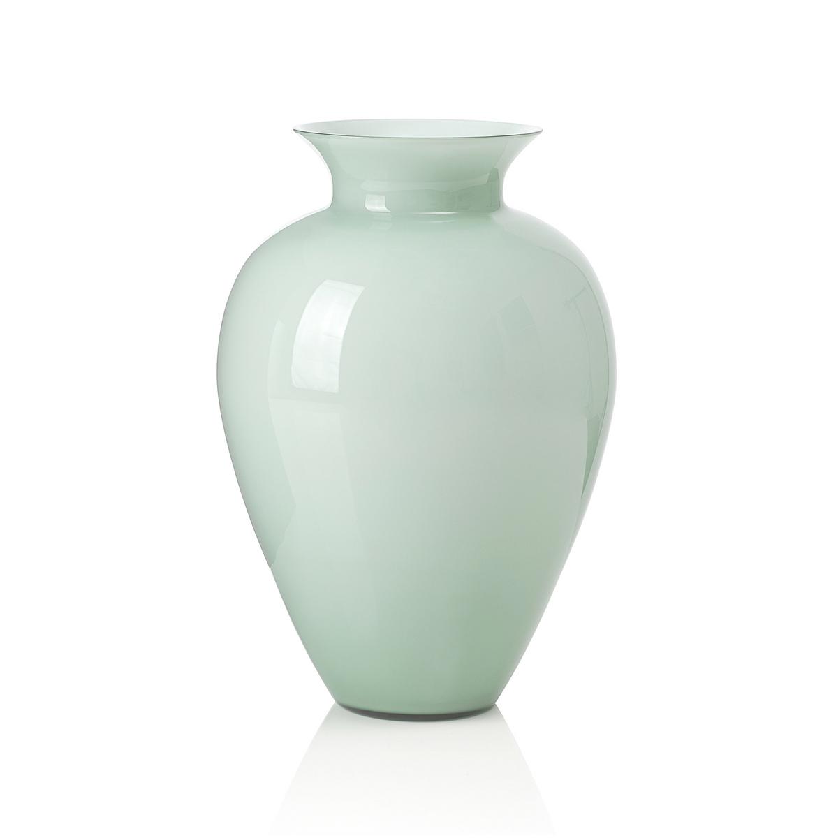 Die Vasen "Labuan" von Venini entstehen mit der sogenannten "Überfangtechnik". Die Überfangtechnik gehört zu den ältesten Glasbearbeitungstechniken. Es bedarf besondere Fertigkeiten der Glasbläser mit dieser Technik Objekte aus Glas herzustellen. Als Inspiration für die Form der Vasen "Labuan" von Venini galten typische chinesische Amphoren.