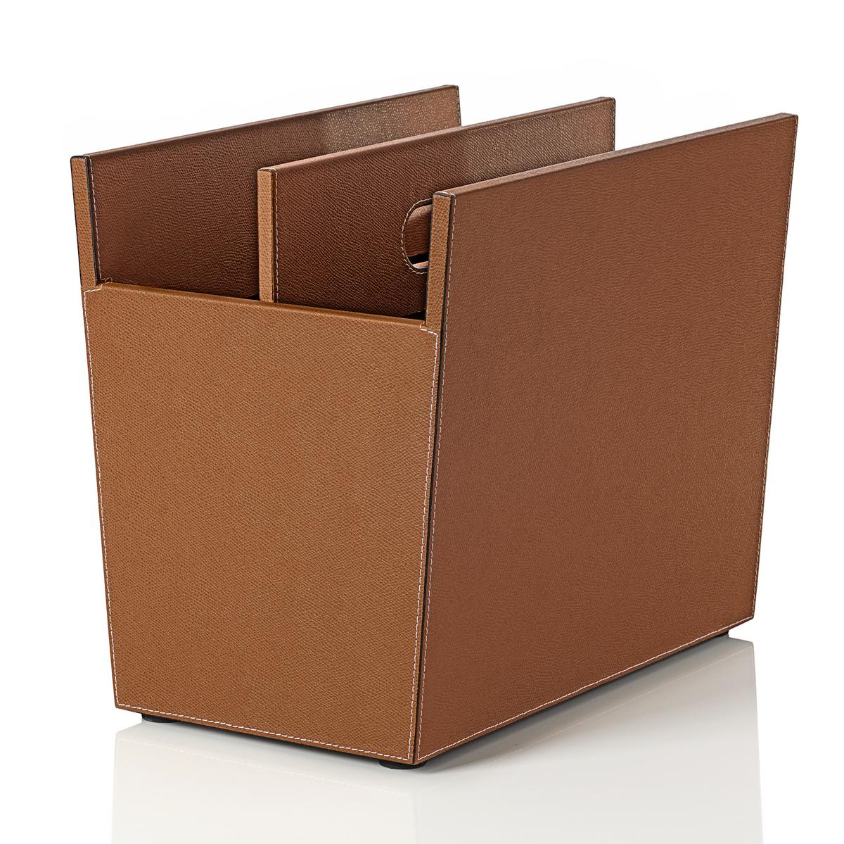 Die Zeitschriftenhalter "Rivista" von GioBagnara aus handgenähtem italienischen Kalbsleder sorgen für Ordnung und sind zugleich ein formschönes Accessoire, das die Einrichtung bereichert.