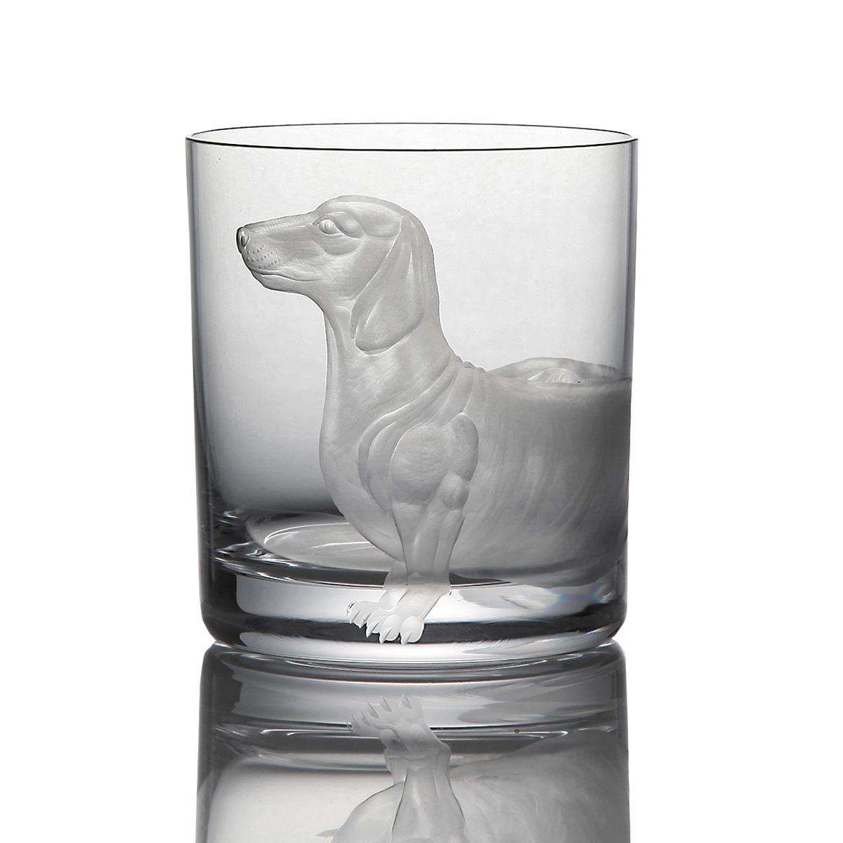 "Drink gefällig? Kristallglas aus der Serie Dog Collection, hier mit eingraviertem Dackelmotiv."