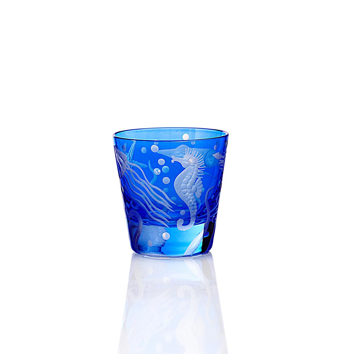 Design mit Tiefgang: "Frutti di Mare" heißt diese Glasserie der tschechischen Manufaktur Artel. Fische, Seepferdchen und Muscheln – kunstvoll von Hand eingraviert – sind die Zutaten, die Gläser, Becher und Karaffe so kostbar machen. Schönes Detail: Auf jedem Glasboden breitet ein Tintenfisch seine Arme aus.